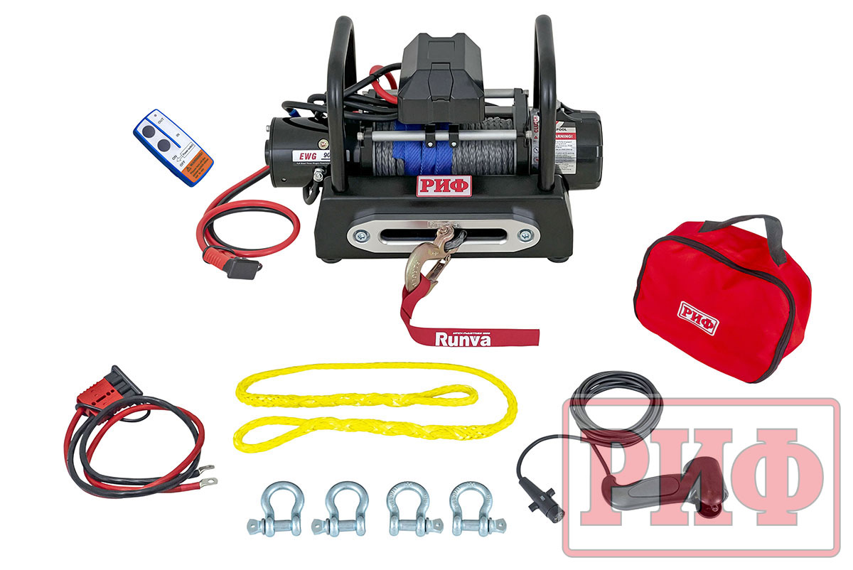 Лебёдка переносная РИФ 9000USR c площадкой и проводами (синтетический трос).