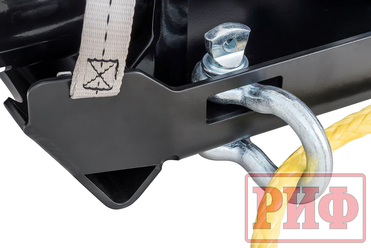 Все, что нужно сделать, чтобы начать пользоваться переносной лебедкой РИФ – это прикрепить ее к буксирным проушинам с помощью троса.