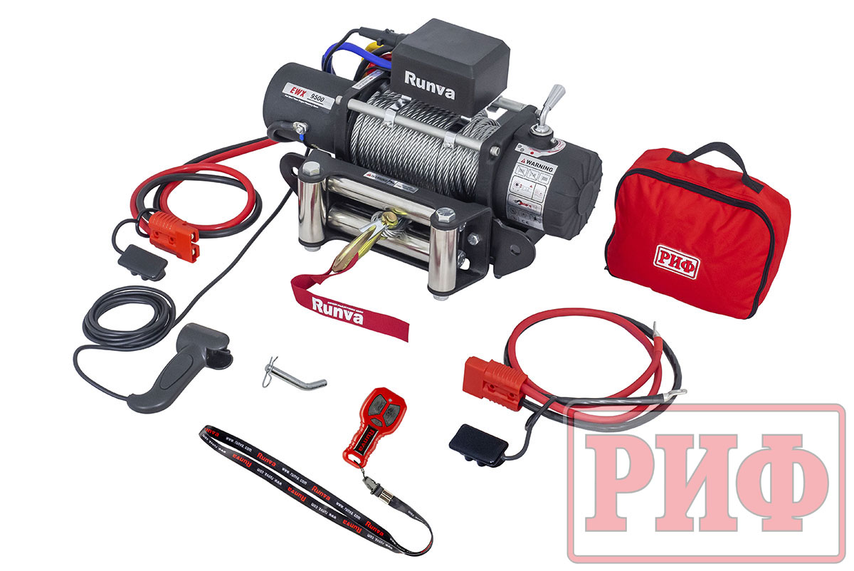 Переносная лебедка РИФ представляет из себя полностью готовый к эксплуатации комплект из лебедки с подключенными к ней проводами, установленной на площадку РИФ, с закрепленным на ней клюзом для троса. Все собрано уже на заводе и готово к эксплуатации. Длинные провода упакованы в удобную прочную капроновую сумку.