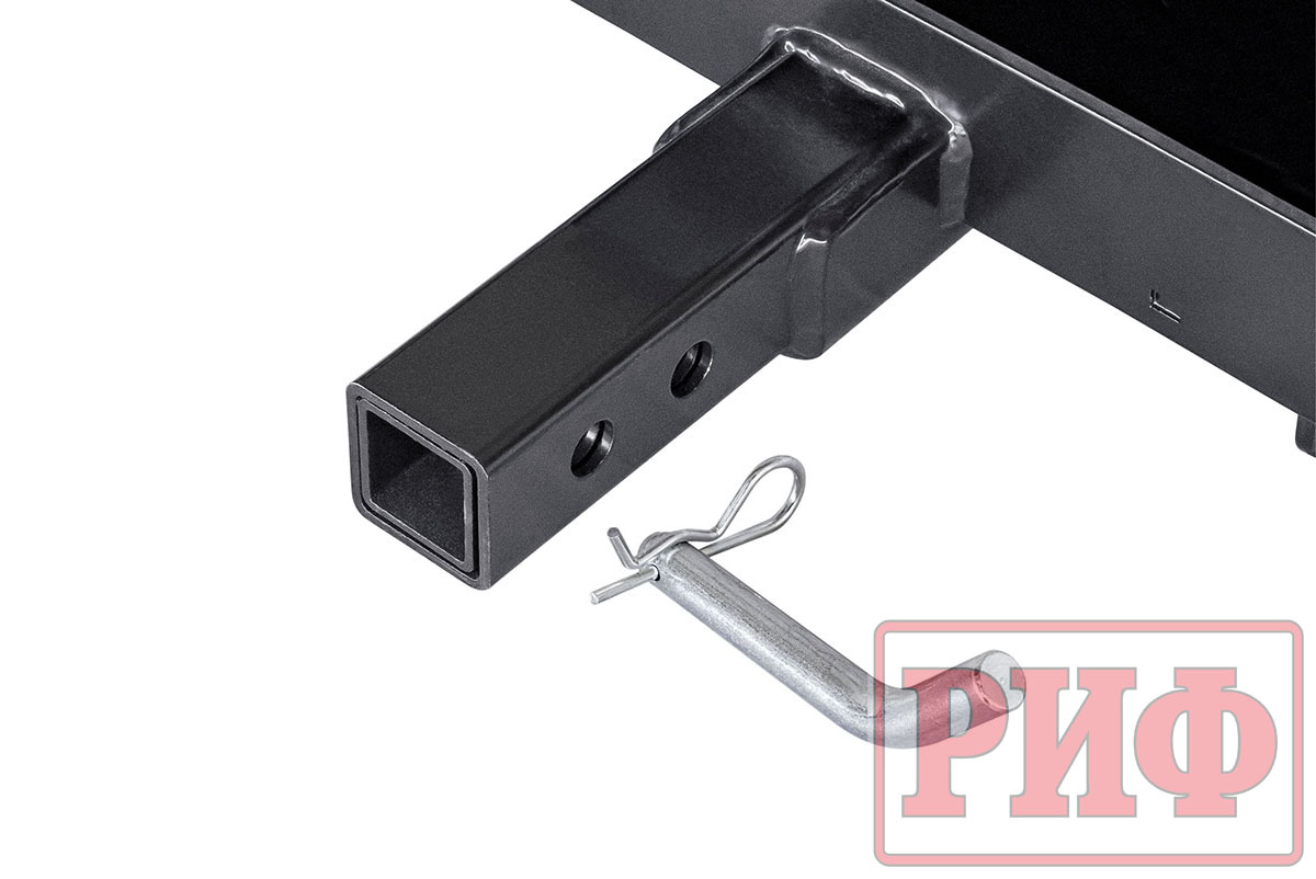Лебёдка установлена на компактной и практичной площадке РИФ с креплением в квадрат для фаркопа, которая очень проста и удобна в применении.
