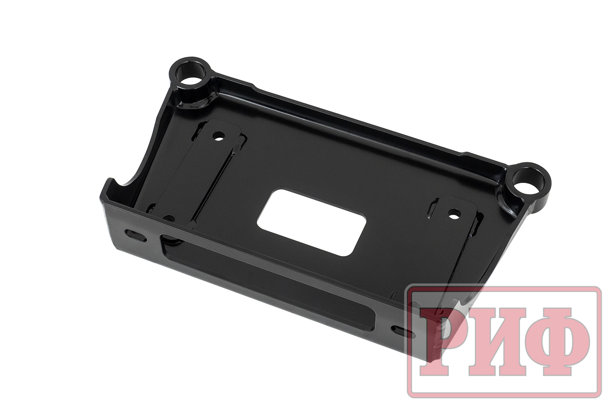 Лебедка устанавливается в компактную и практичную площадку РИФ с креплениями к буксирным проушинам, самым главным плюсом которой является простота ее использования. Благодаря такой площадке не потребуется никаких переделок, чтобы оснастить автомобиль лебедкой – вообще никаких изменений в конструкции авто. Все необходимое поселится в багажнике. Все, что нужно сделать на подготовительном этапе - это прицепить к клеммам аккумулятора и лебедки по паре длинных проводов с разъемом «папа-мама» и прикрутить лебедку и клюз/губы к площадке.