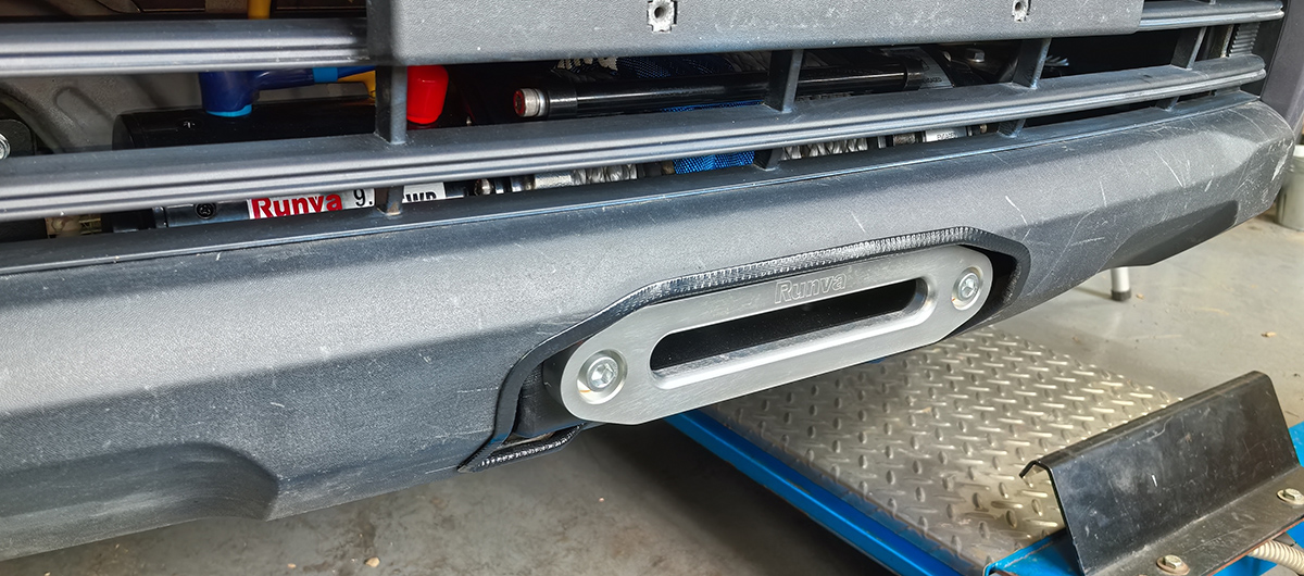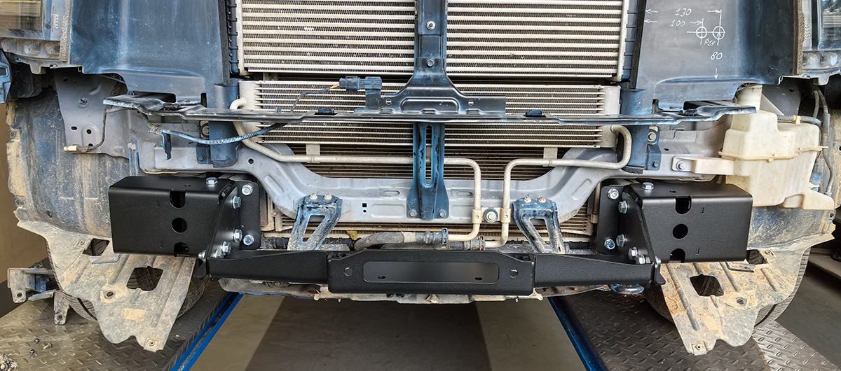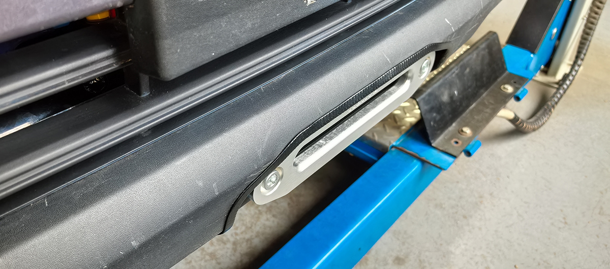 Отличительной особенностью площадки РИФ является её особо прочная усиленная конструкция. Площадка устанавливается на раму автомобиля и не требует никаких вмешательств в конструкцию, кроме вырезания в штатном бампере аккуратного отверстия под клюз или ролики для троса.