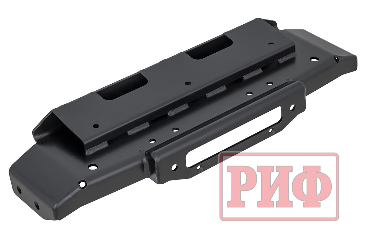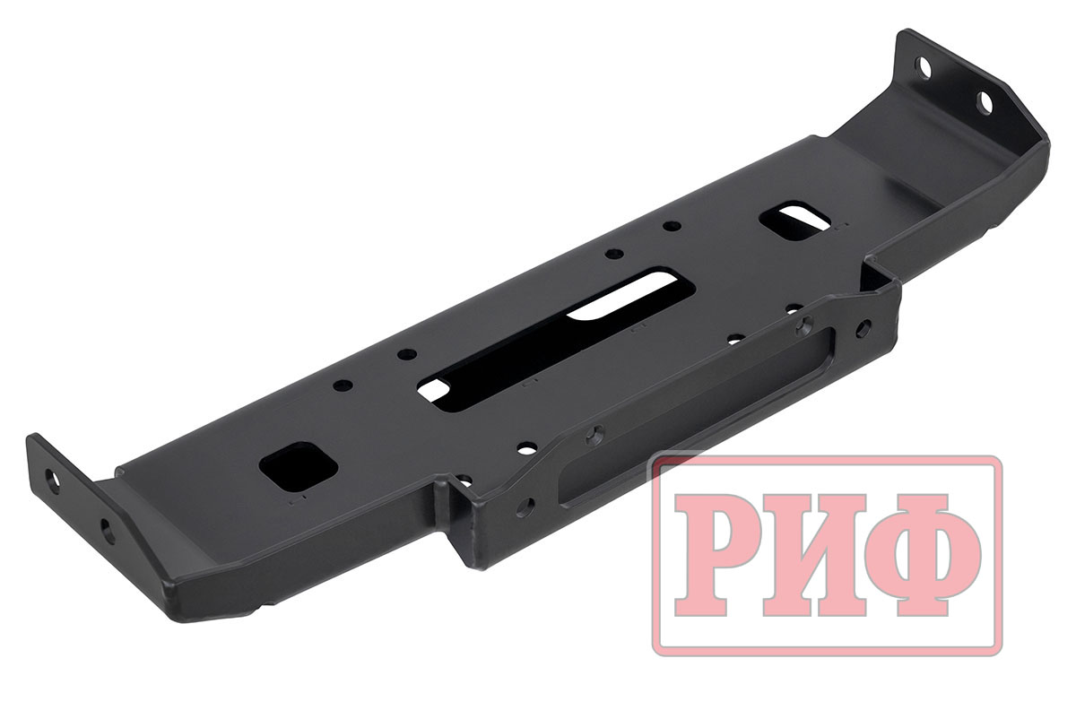 Отличительной особенностью площадки РИФ является её особо прочная усиленная конструкция. При установке площадки не требуется никаких серьезных вмешательств в конструкцию, кроме вырезания в штатном бампере аккуратного отверстия под клюз для троса.