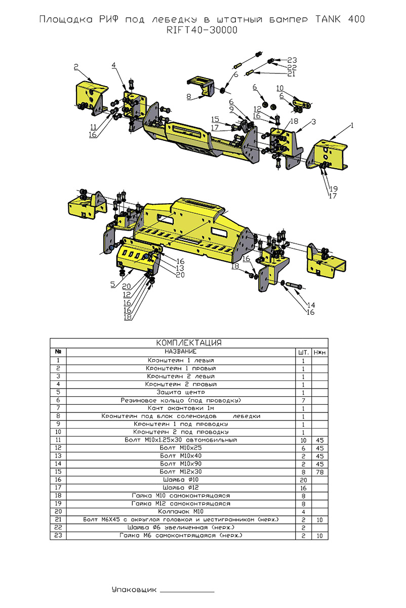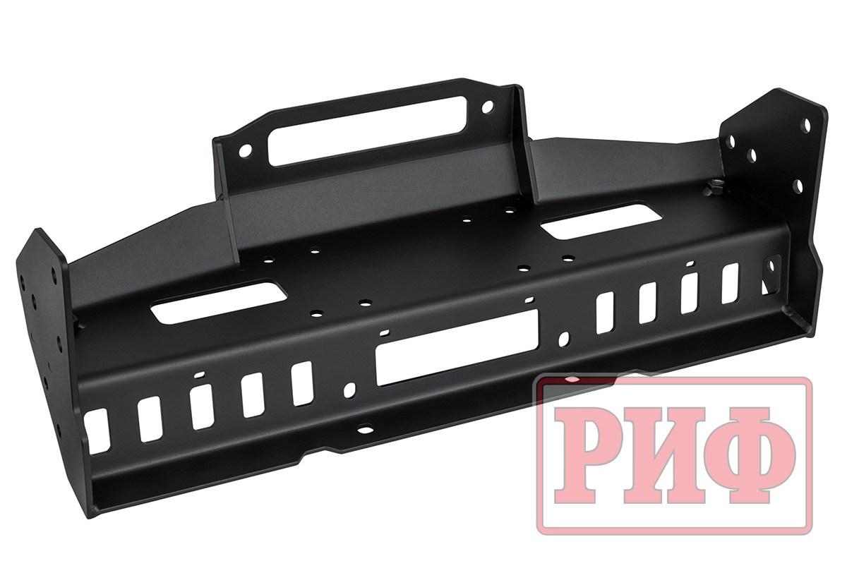 Данная площадка при установке не требует каких-либо сварочных работ. Бампер, подкрылки и фартук в нижней части машины крепятся на свои штатные места. Площадка предназначена для установки лебедки 8000-9500 lbs и некоторых моделей 12000 lbs (диаметр корпуса до 180 мм). Отличительной особенностью площадки РИФ является её особо прочная конструкция. Толщина металла - 6 мм.