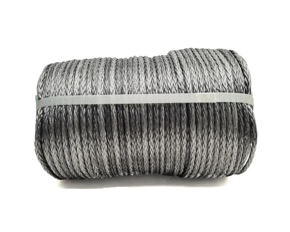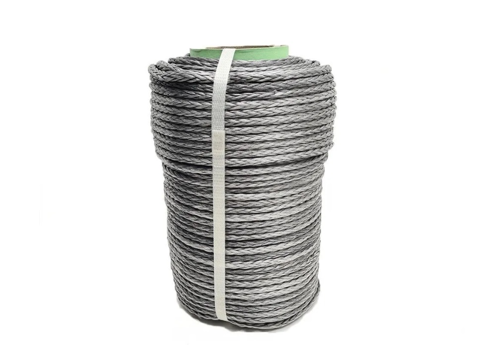 Синтетический трос для лебедки 6 мм 100 метров, цвет серый.
