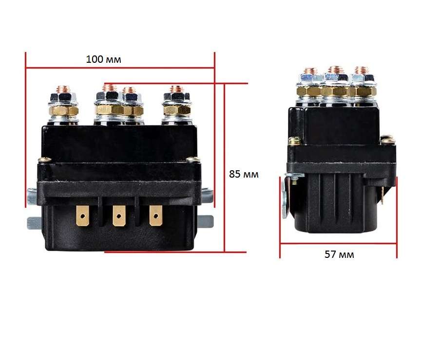 Моносоленоид, контактор или соленоид управления автомобильной лебедкой особенно удобен в случаях переноса блока управления лебедки в подкапотное пространство.