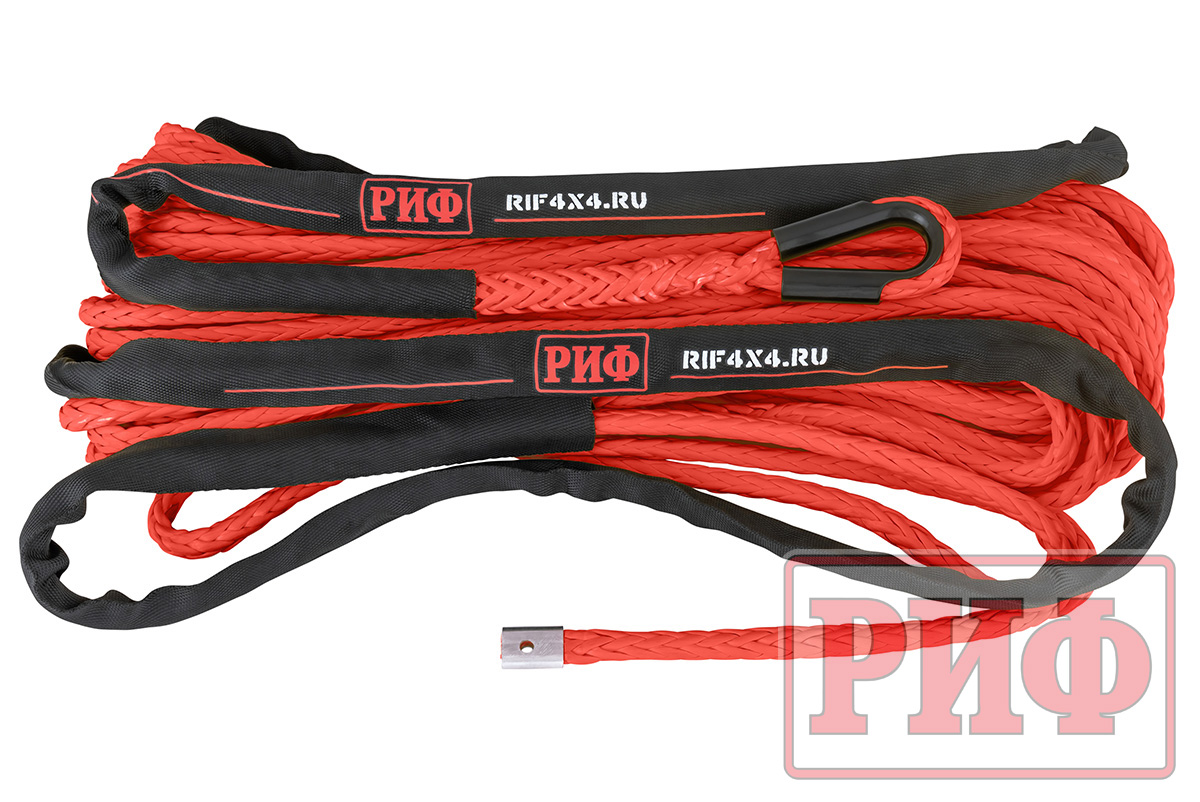 Синтетический трос РИФ изготовлен из UHMWPE(Ultrahigh molecular weight polyethylene) – полиэтилен (c ультравысокой молекулярной массой) и также прочен, как стальной, но при этом он очень легкий, износостойки и абсолютно безопасный в использовании – даже если он порвется под нагрузкой, тяжелых травм человеку и автомобилю не нанесет благодаря мягкости и маленькому весу.
