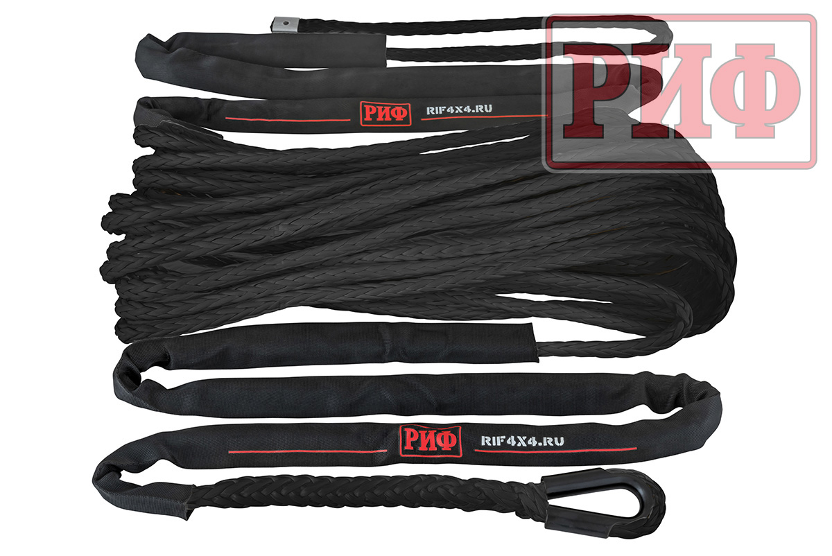 Синтетический трос РИФ изготовлен из UHMWPE(Ultrahigh molecular weight polyethylene – Сверхвысокомолекулярный полиэтилен высокой плотности) и он также прочен, как стальной, но при этом он очень легкий, износостойки и абсолютно безопасный в использовании – даже если он порвется под нагрузкой, тяжелых травм человеку и автомобилю не нанесет благодаря мягкости и маленькому весу.