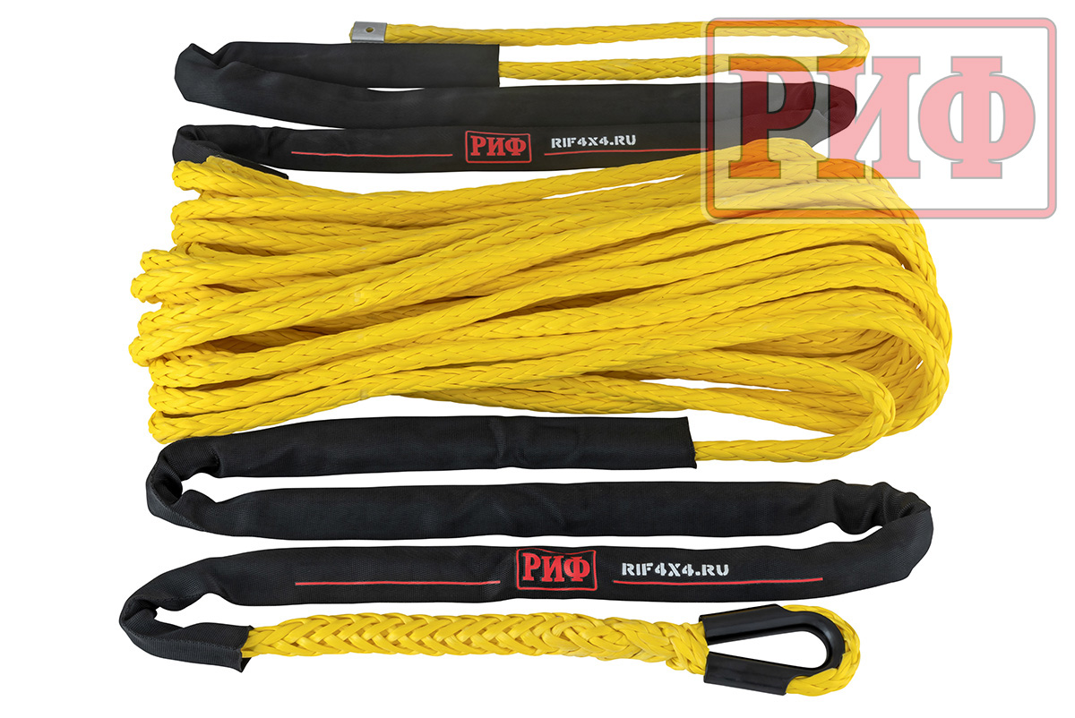 Синтетический трос РИФ изготовлен из UHMWPE(Ultrahigh molecular weight polyethylene – Сверхвысокомолекулярный полиэтилен высокой плотности) и он также прочен, как стальной, но при этом он очень легкий, износостойки и абсолютно безопасный в использовании – даже если он порвется под нагрузкой, тяжелых травм человеку и автомобилю не нанесет благодаря мягкости и маленькому весу.