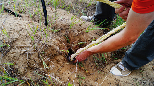 Якорь утапливается в землю и трос лебедки цепляется за него.