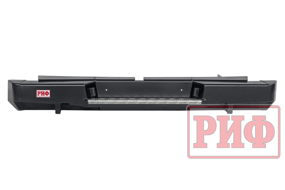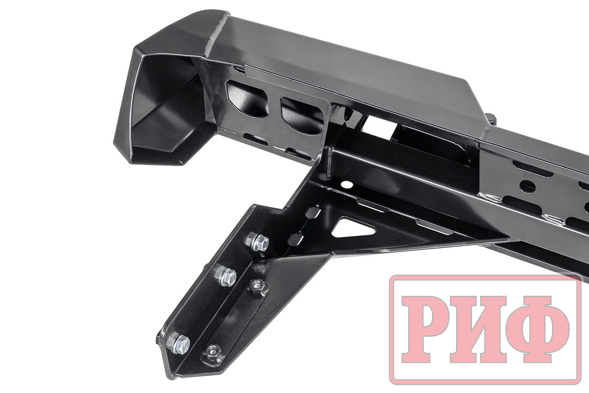 Задний силовой бампер РИФ надежно защитит кузов автомобиля на бездорожье или в городе в случае непредвиденных инцидентов. Бампер оборудован упорами под хай джек и буксирными проушинами для работы с рывковой или буксировочной стропой.