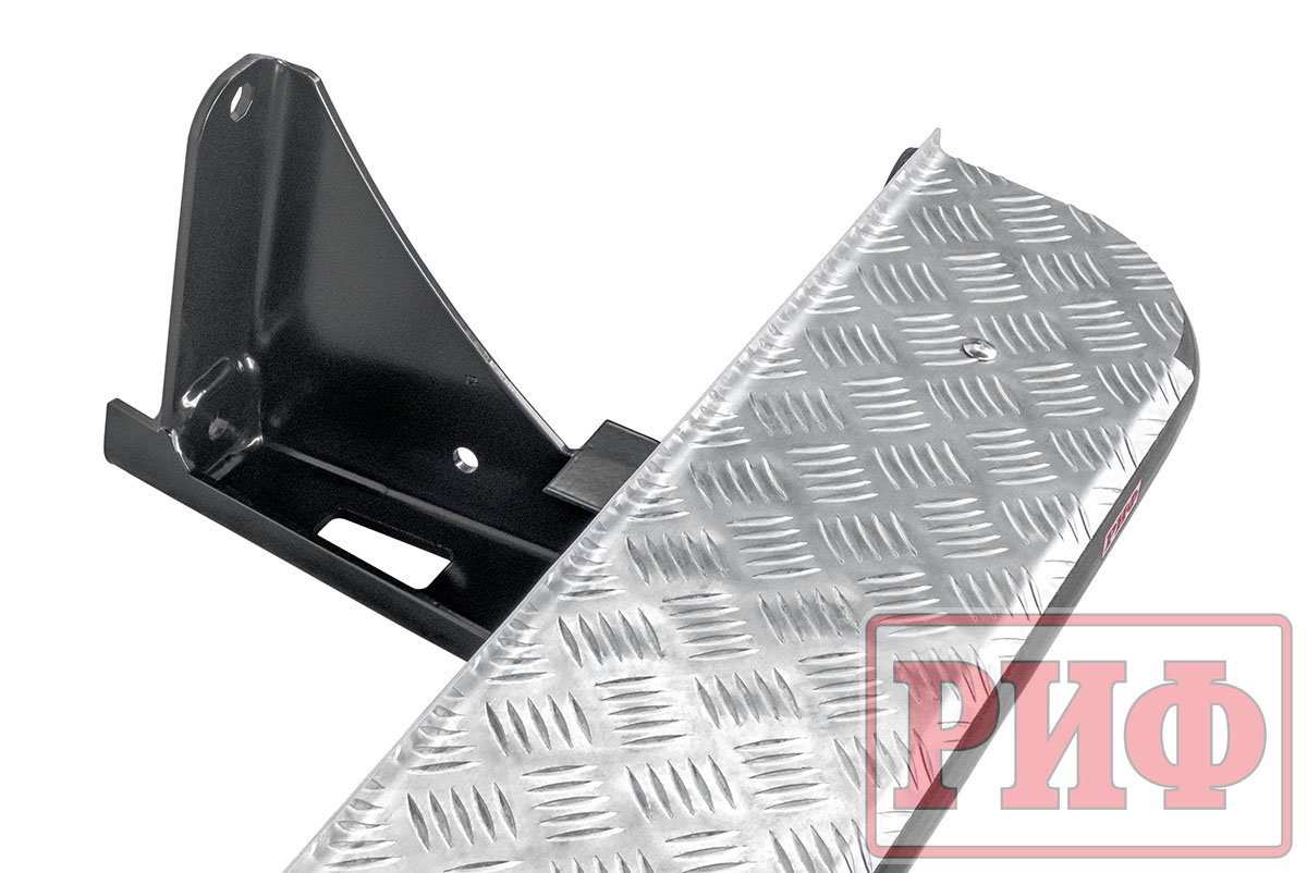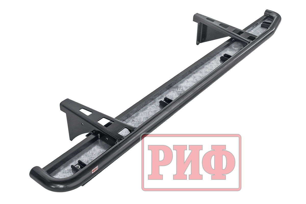 Конструкция порогов РИФ крайне прочна и долговечна, пороги рассчитаны на эксплуатацию в тяжелых условиях – они изготовлены из цельной стальной трубы без применения сварки. Пороги крепятся к раме с помощью стремянок.