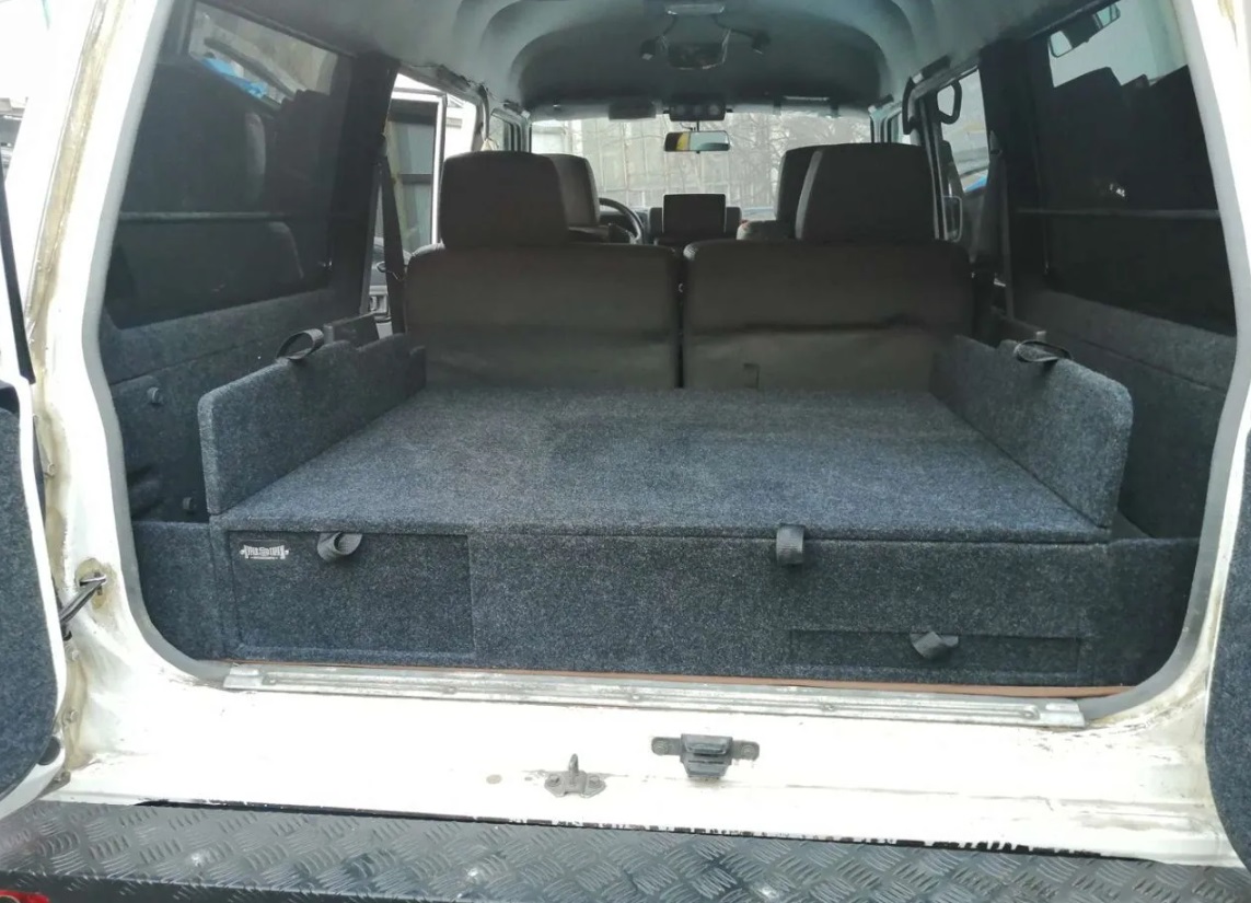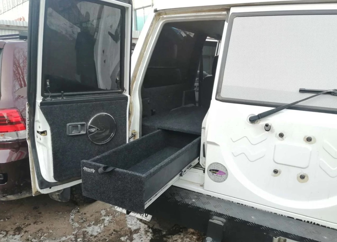 Данный органайзер-спальник позволяет убрать весь шмурдяк (стропы, огнетушитель, аптечку, небольшие домкраты и т.д.) в свои просторные ящики. А так же при сложенных спинках сидений образует ровный пол, а значит можно с комфортом обустроить спальное место на несколько человек.