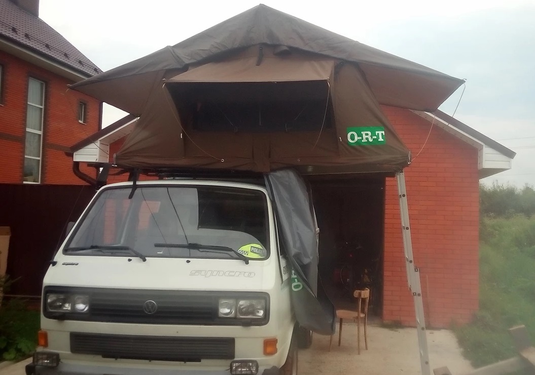 Автопалатка RT02-120 пользуется заслуженной популярностью у автотуристов . Эти палатки часто устанавливают на пикапы и прицепы. Так как эта палатка не имеет навеса над лестницей, это позволяет устанавливать ее на невысокие платформы ( кузов пикапа или прицеп). Размер спального места 120 см х 240 см , вполне позволяет ночевать двум взрослым автотуристам и идеально подходит для установки на крышку кузова пикапа с установленными дугами.