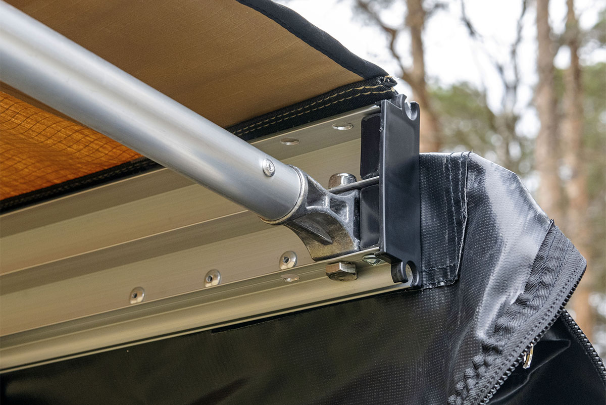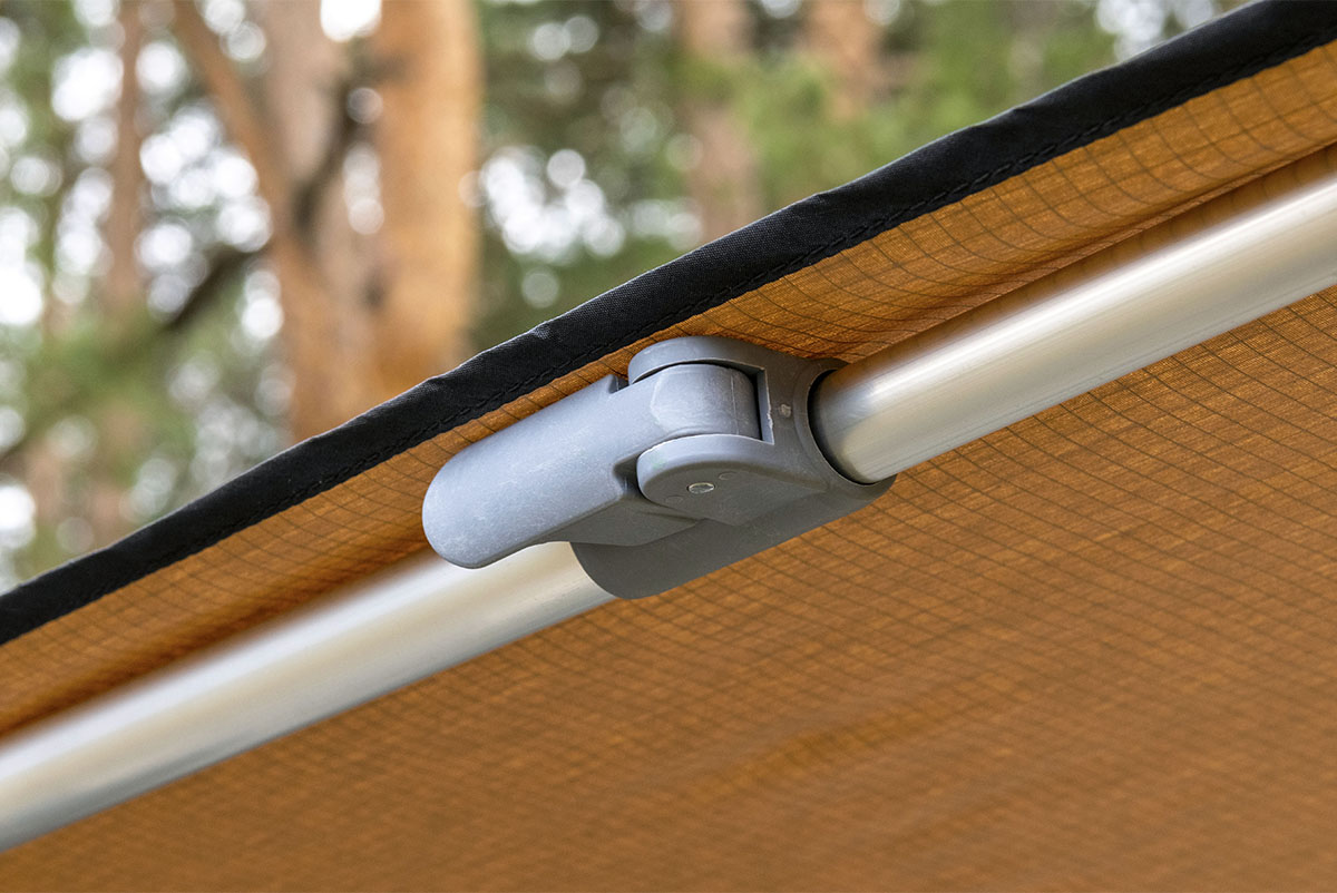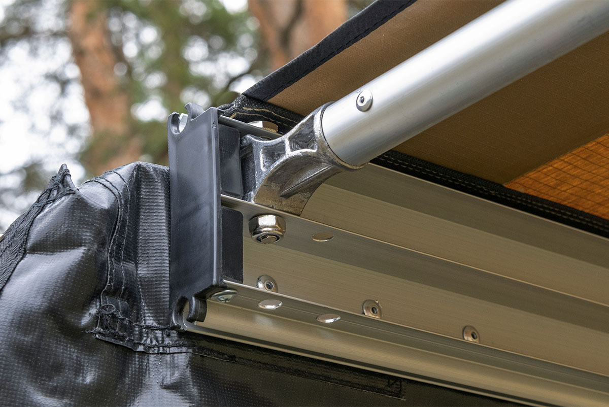 Жестко крепится к кузову автомобиля или автомобильному багажнику, удобно и быстро разворачивается в походное положение. Отлично защищает от прямых солнечных лучей или атмосферных осадков. В транспортном положении тент-маркиза упакован в прочный чехол из ПВХ материала, надежно защищающий его от повреждений или загрязнений.