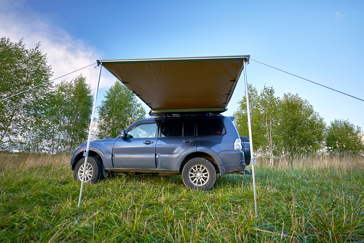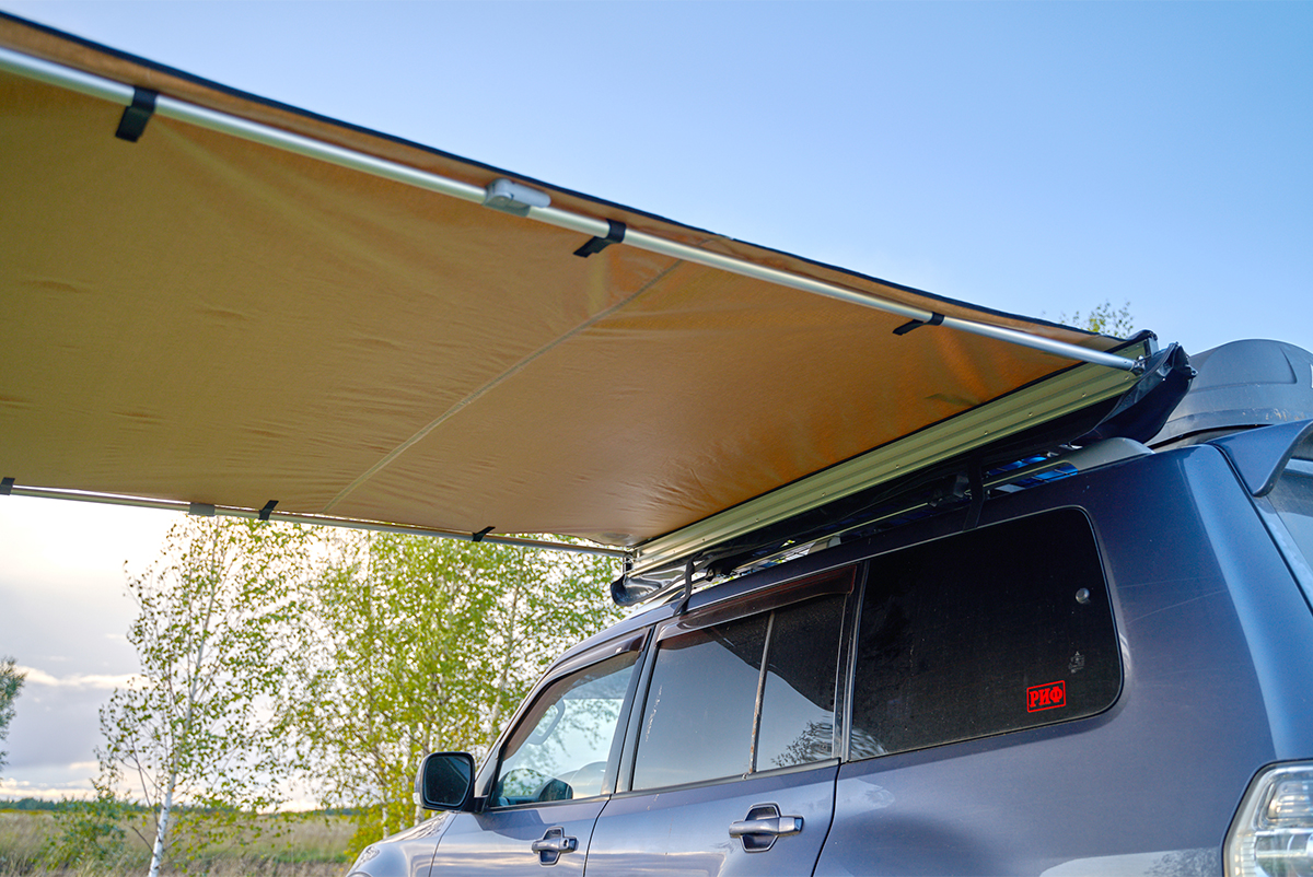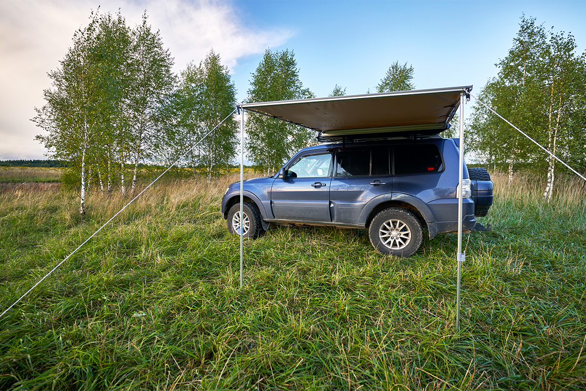 Солнечным днем маркиза автомобильная защитит туристов от палящих лучей, пасмурным – от холодных дождевых капель и снежной крупы.