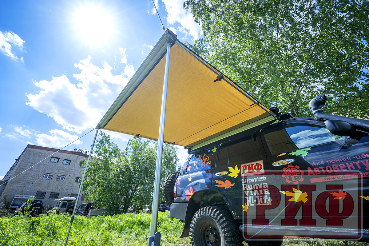 Автомобильный тент-маркиза размером 2 на 2 метра.