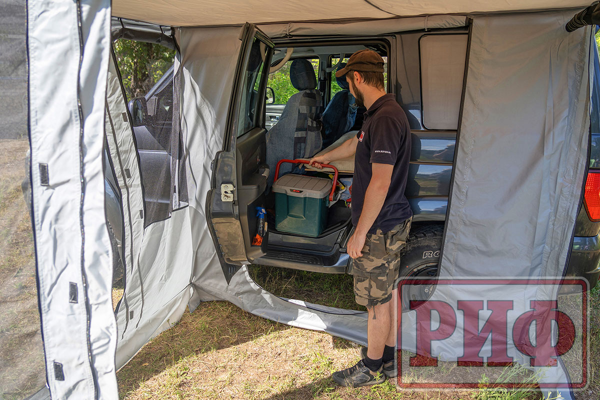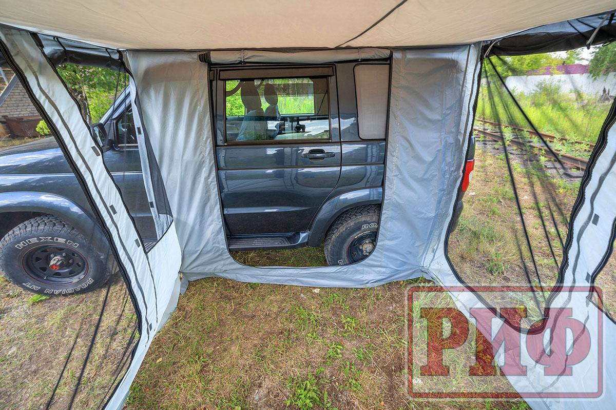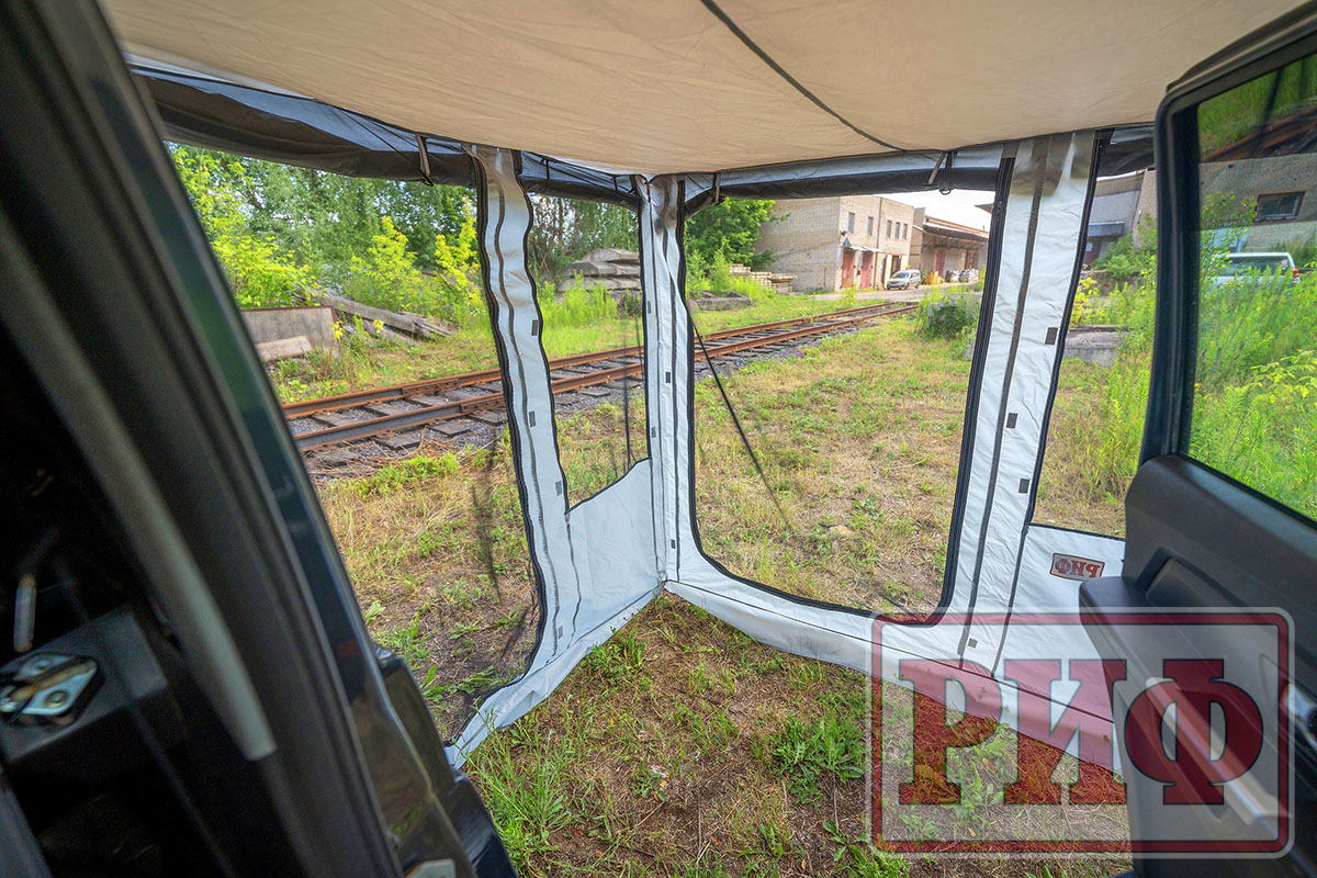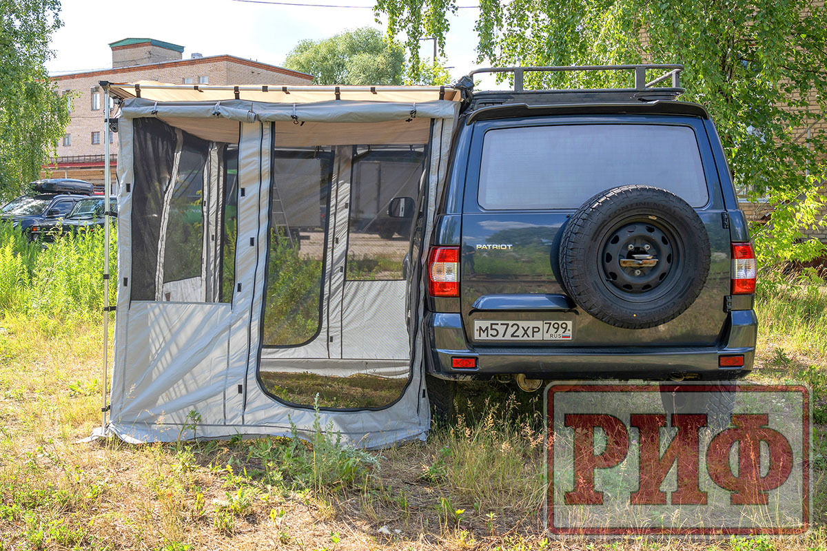Комплект стенок для веерного тента с окнами и дверью существенно повысит ваш уровень комфорта на природе. Стенки дают дополнительную защиту от ветра и дождя и позволяют организовать полноценный «тамбур» рядом с машиной. На отдыхе, во время многодневных стоянок подобная опция будет незаменимой при организации душевых процедур, как полноценная защита от ветра и посторонних взглядов. В жаркое время года, благодаря имеющимся окнам можно эффективно организовать проветривание, при этом наличие москитных сеток на окнах и двери не позволит насекомым донимать вас на отдыхе.