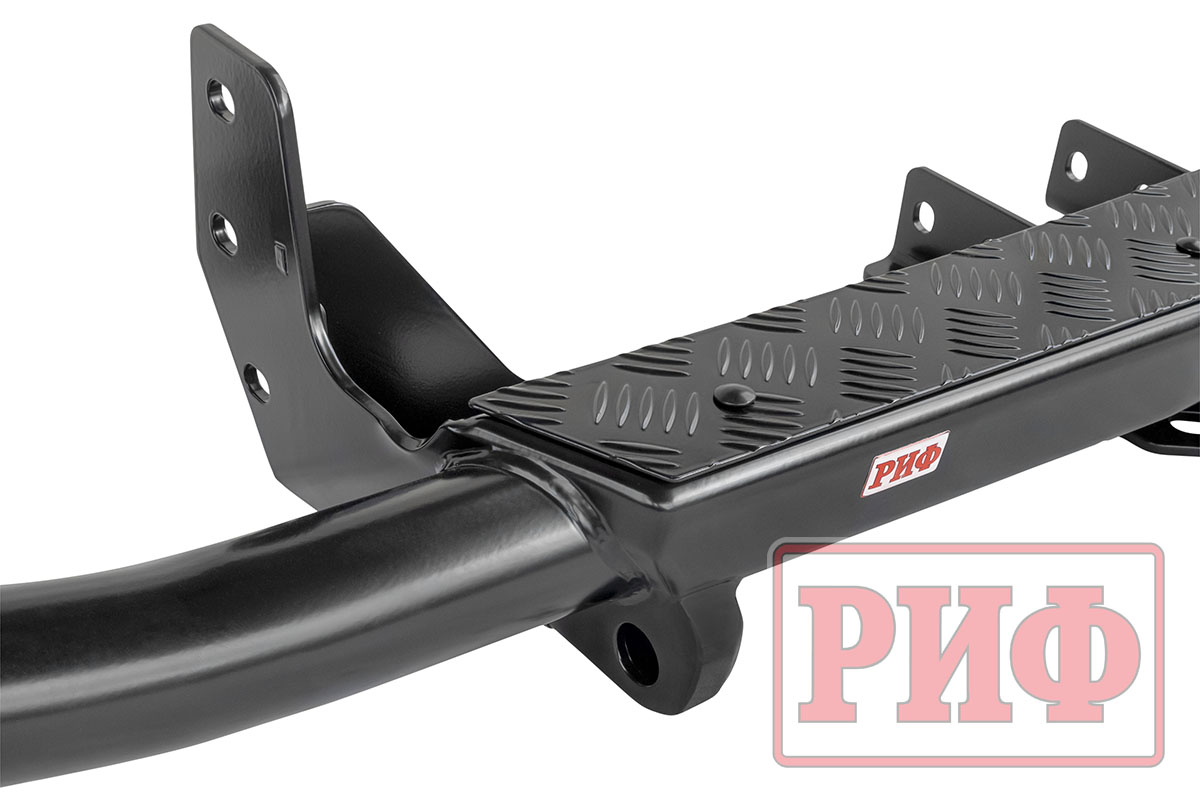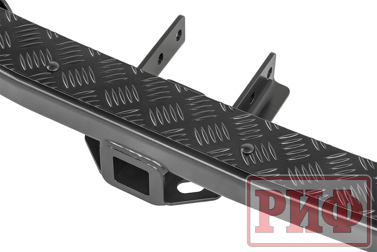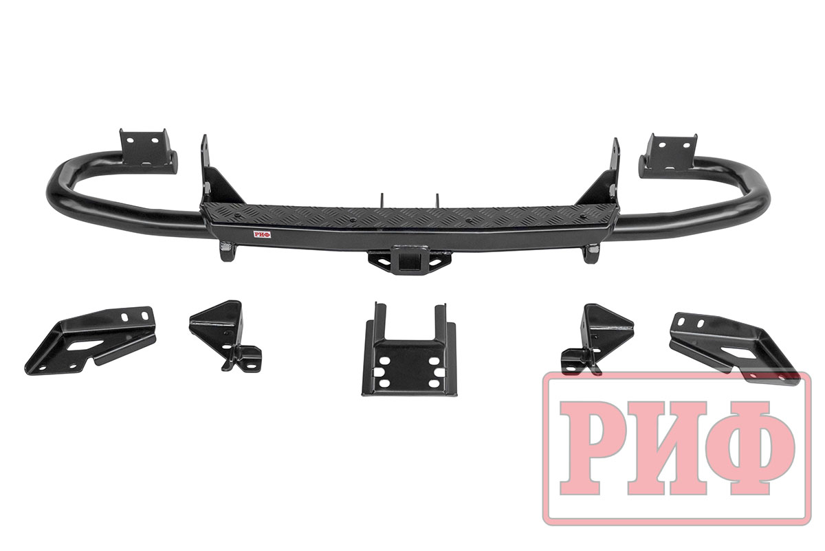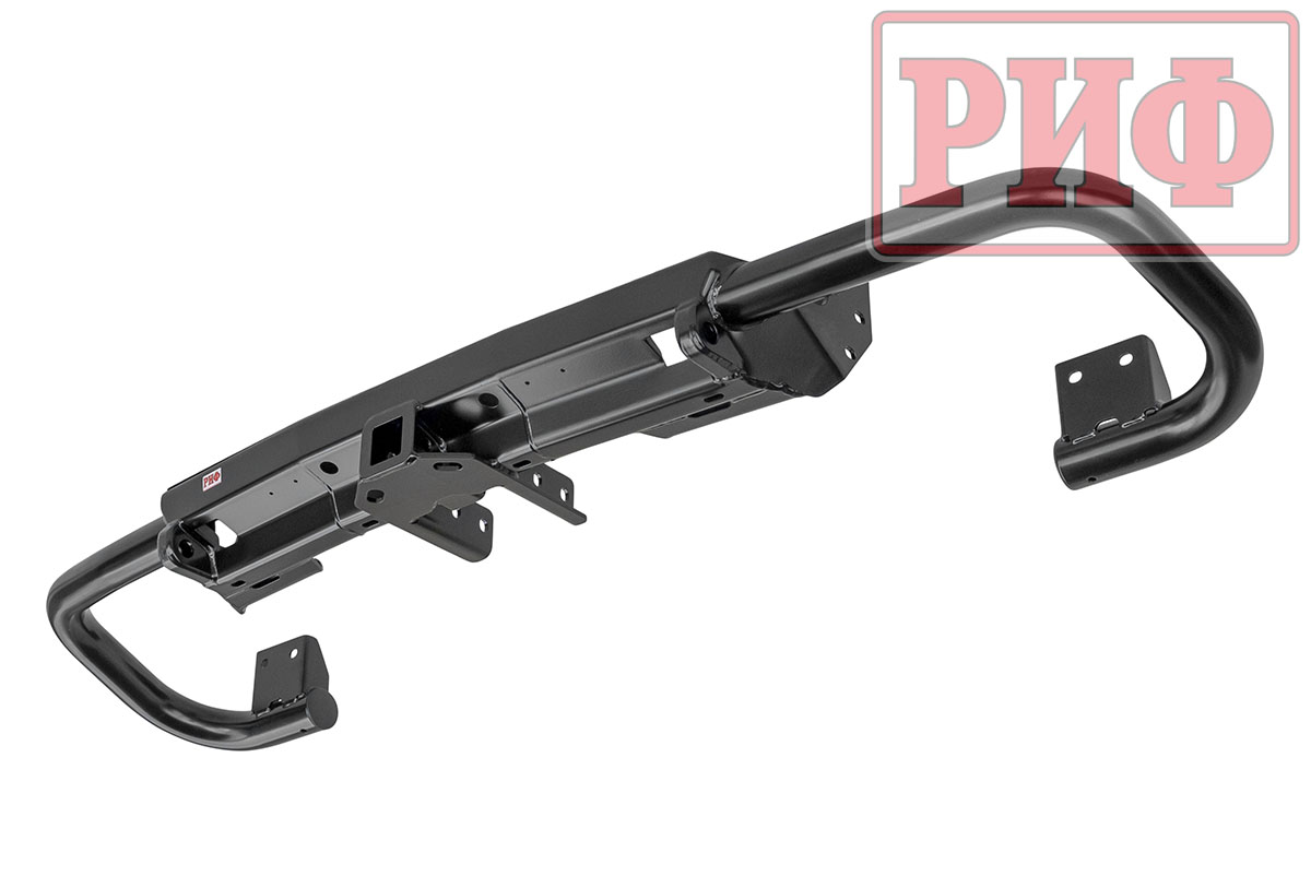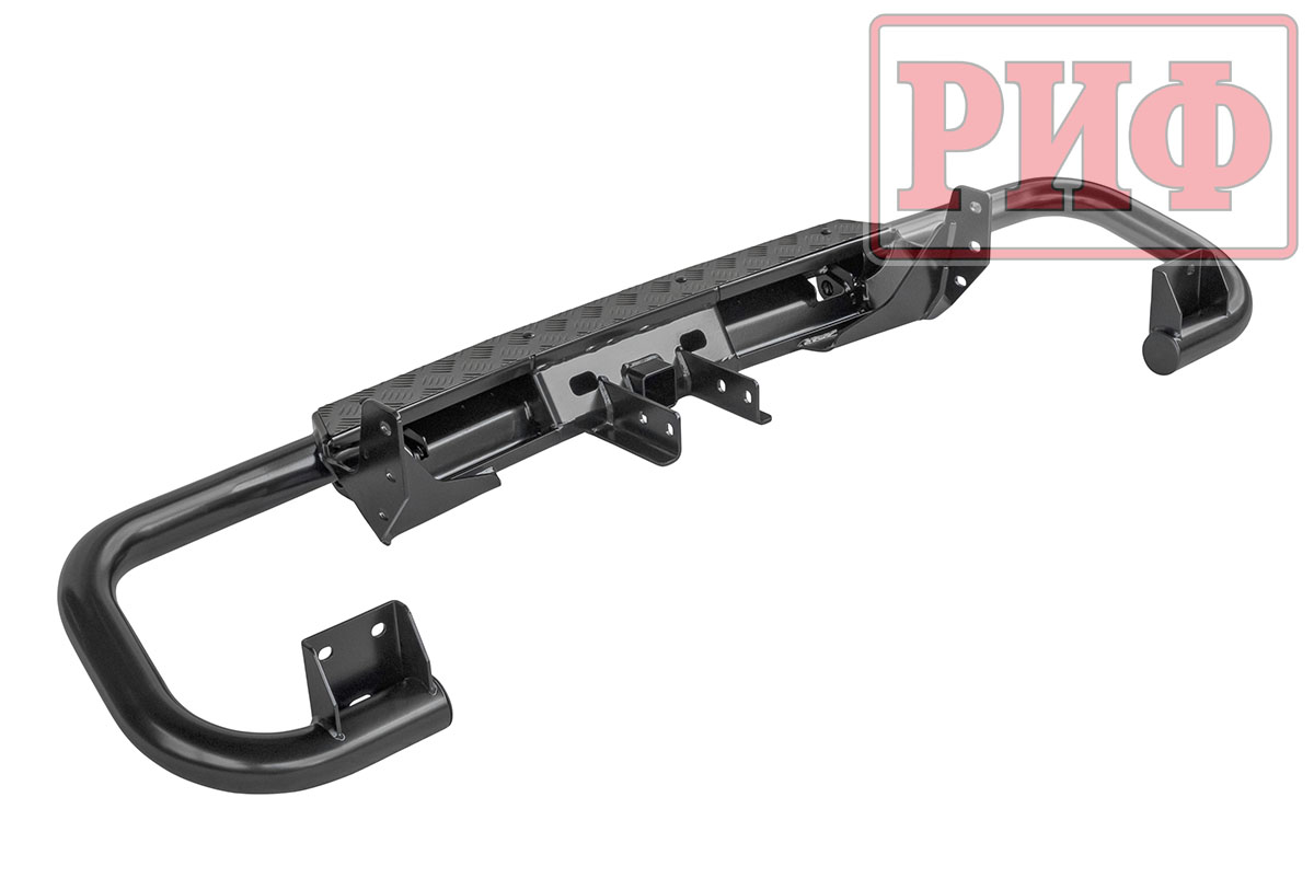 Задний силовой бампер РИФ надежно защитит кузов автомобиля на бездорожье или в городе в случае непредвиденных инцидентов. Бампер оборудован упорами под хай джек и буксирными проушинами для работы с рывковой или буксировочной стропой.