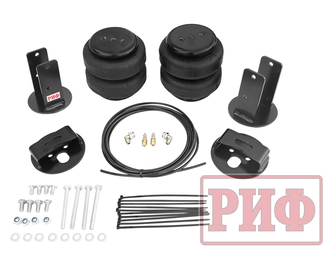 Комплект пневмоподвески РИФ устанавливается в дополнение к штатной подвеске автомобиля и позволяет снизить нагрузку на рессоры и позволяет использовать полную грузоподъёмность автомобиля без изменения геометрической проходимости