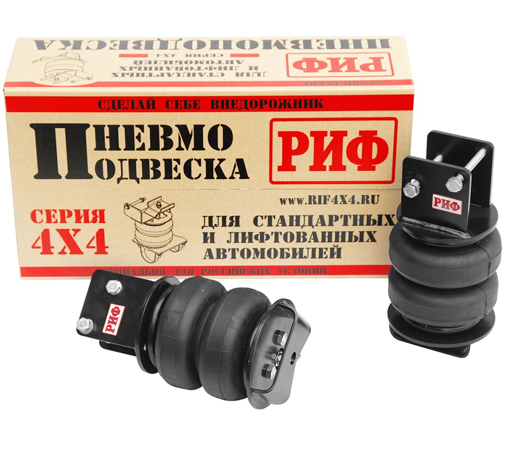 Комплект пневмоподвески РИФ устанавливается в дополнение к штатной подвеске автомобиля и позволяет снизить нагрузку на рессоры и использовать полную грузоподъёмность автомобиля без изменения геометрической проходимости.