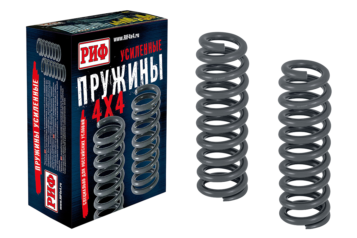 Пружины РИФ сделаны на основе многолетнего опыта подготовки и эксплуатации разных полноприводных автомобилей на различных типах дорожных покрытий в различных климатических зонах.