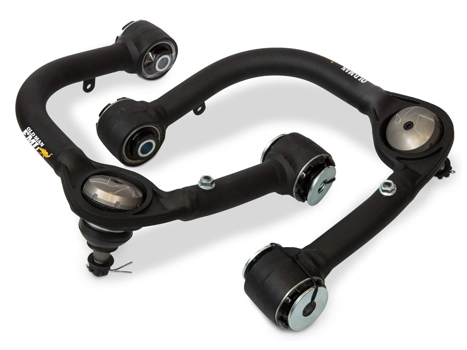 В усиленном верхнем рычаге Old Man Emu положение шаровой изменено с учетом подъема автомобиля, а кастор скорректирован до стандартных заводских значений. Кроме того шаровые сделаны шприцуемыми.