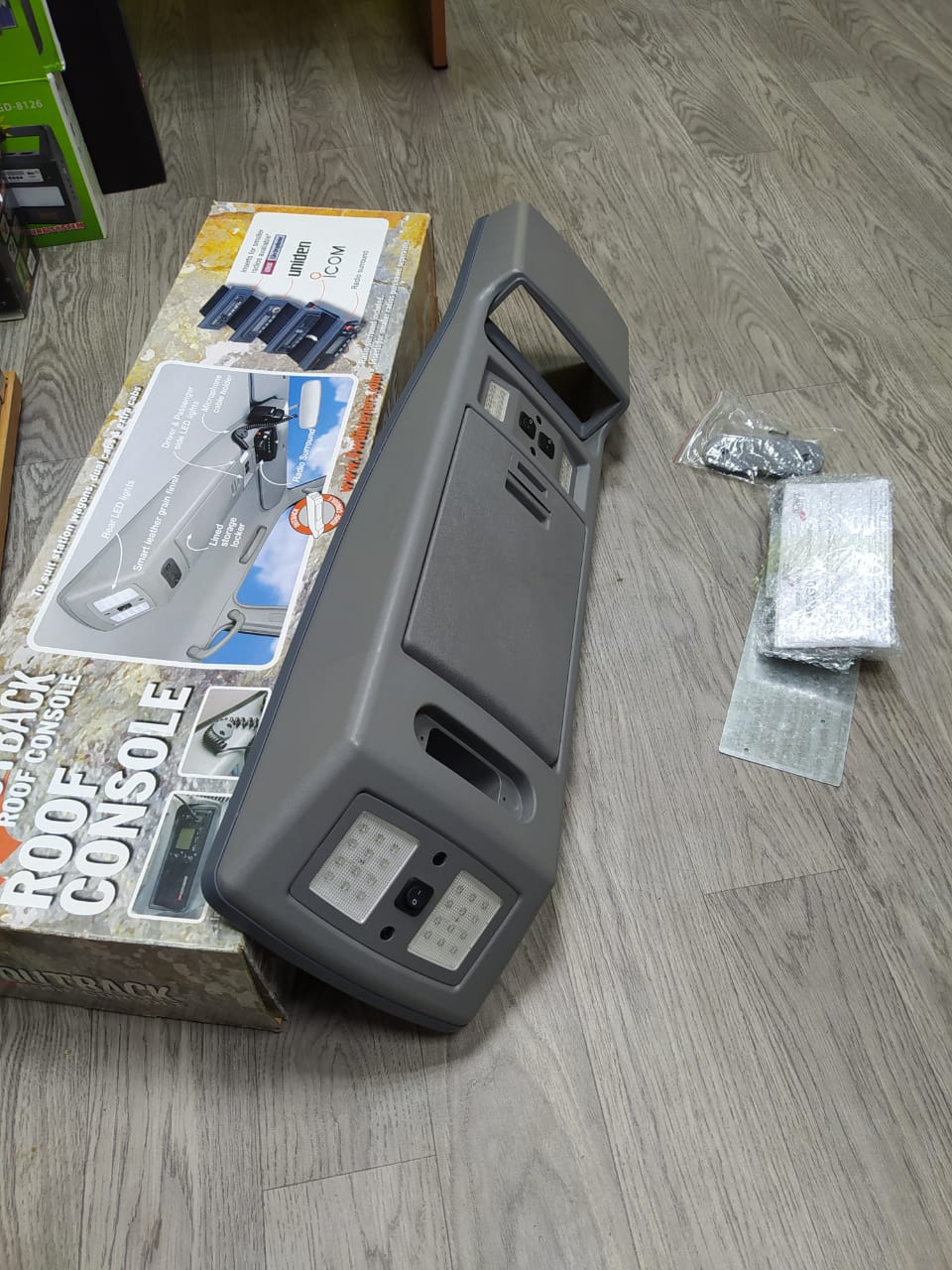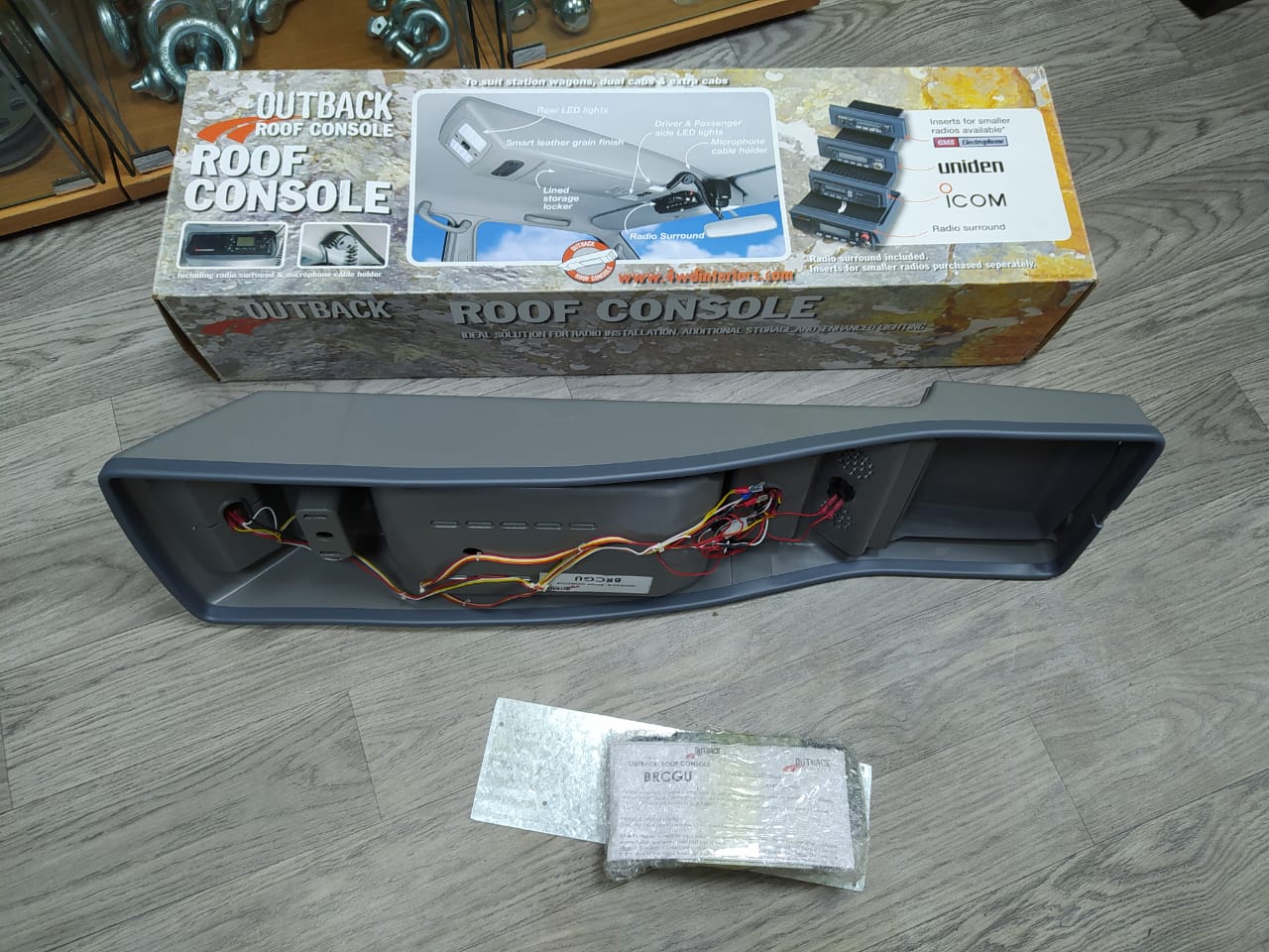 Потолочная консоль BRCGU разработанна для внедорожника Nissan Patrol Y61 и оснащена L.E.D. светильниками салона, гнездом для установки CB радиостанции и емкостью для хранения(ящик для мелочей). Так же есть возможность установки дополнительных переключателей освещения, прикуривателя и прочего оборудования.