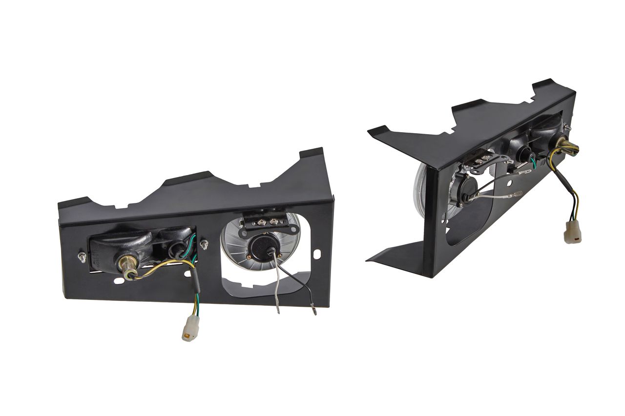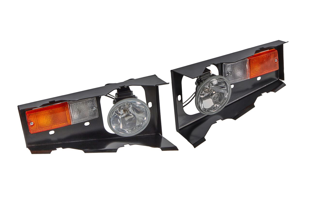 В комплект входят : металлические кронштейны, повторители поворота, противотуманные фонари.