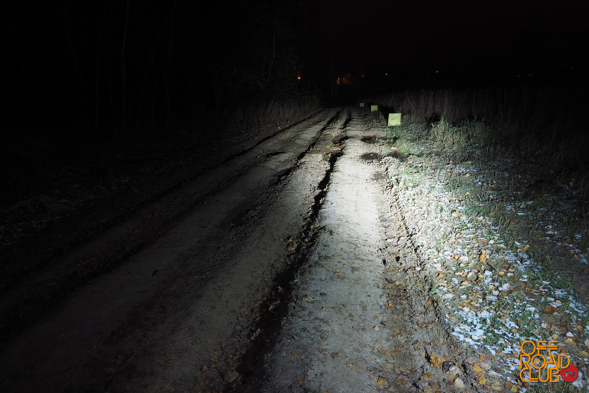 Фара формирует достаточно рассеянный, но одновременно собранный к центру пучок света, близкий по конфигурации и интенсивности к ближнему свету фар автомобиля.