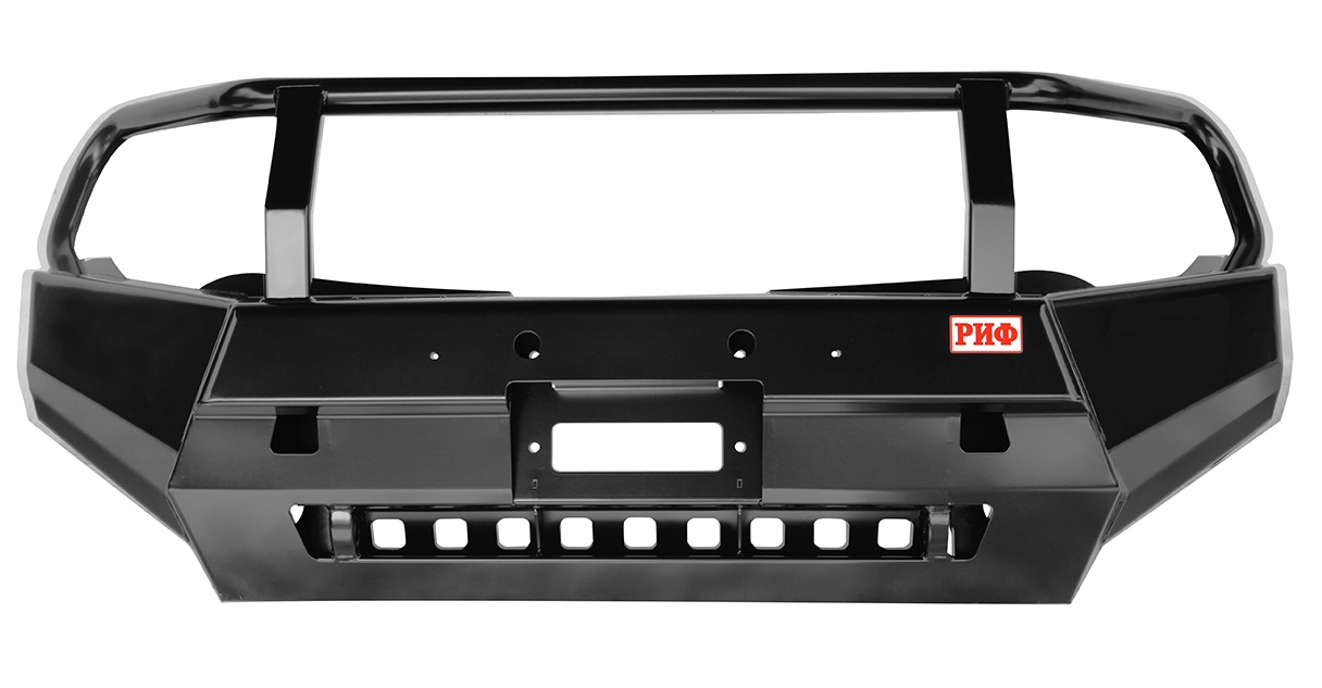 Бампер РИФ силовой передний Mitsubishi L200 2015-2019 с защитной дугой и защитой бачка омывателя.