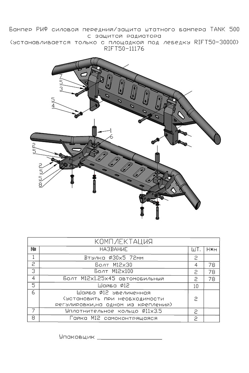 ВНИМАНИЕ! Бампер можно установить только с площадкой под лебедку РИФ
