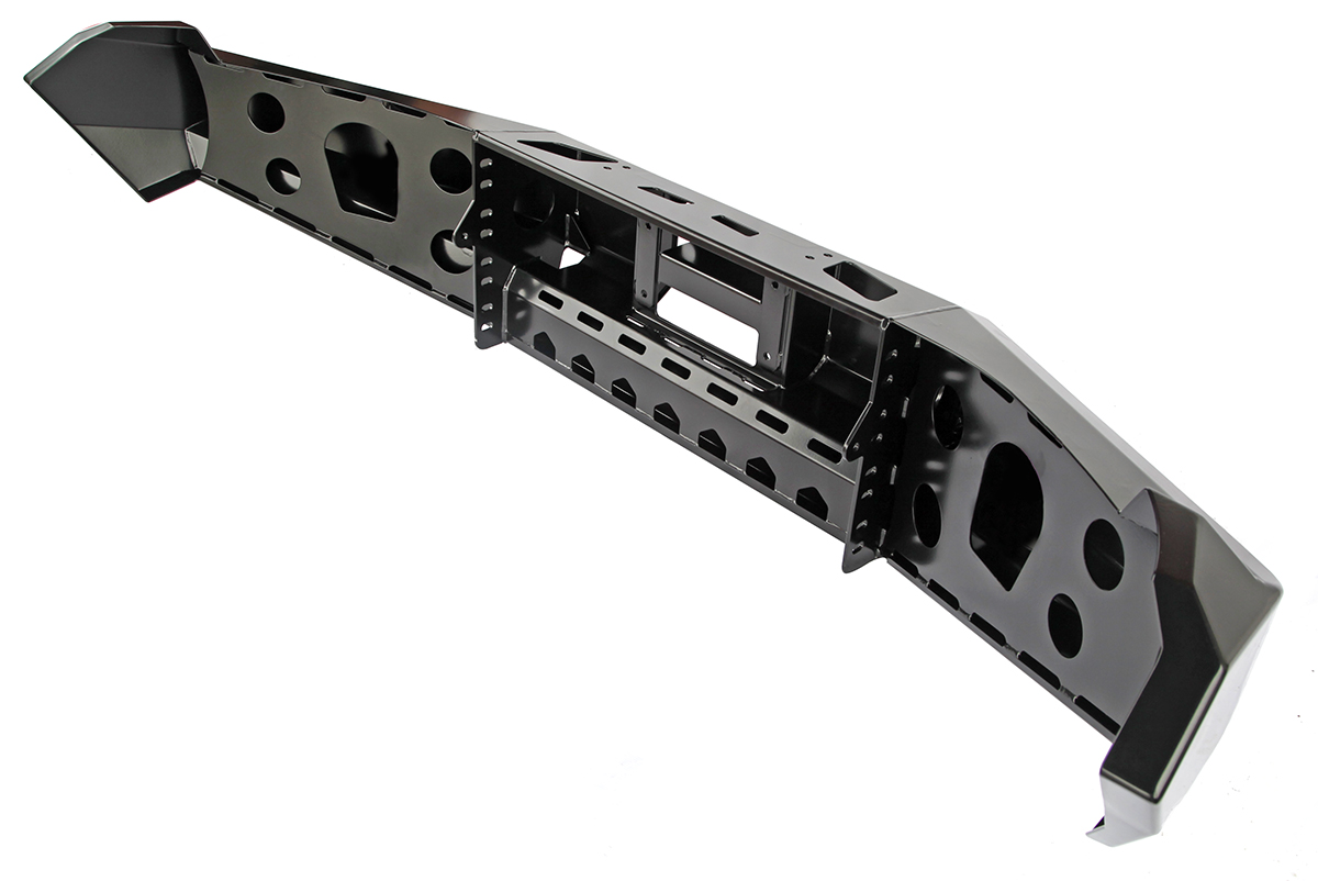 Бампер оснащен мощными упорами под реечный домкрат и буксирными проушинами для работы с рывковой или буксировочной стропой. Тщательно продуманная конструкция внутренних усилителей обеспечивают максимальну