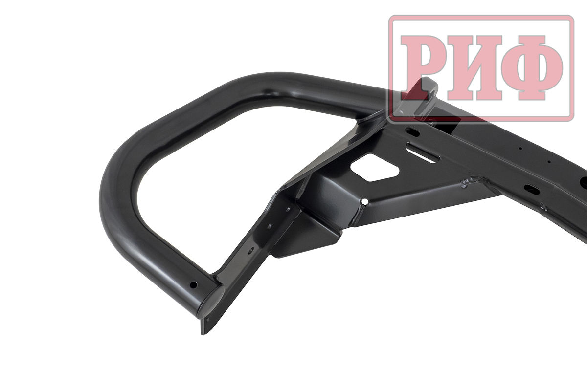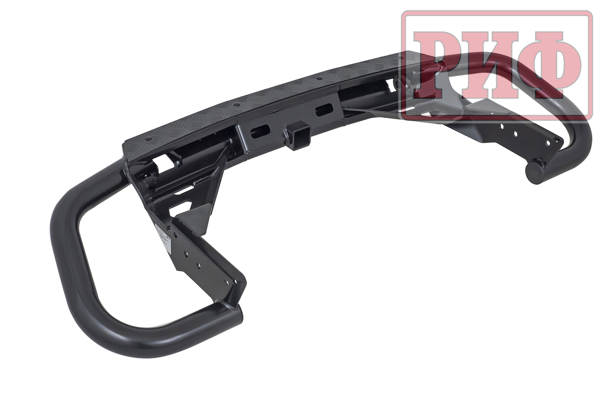 Задний силовой бампер РИФ надежно защитит кузов автомобиля на бездорожье или в городе в случае непредвиденных инцидентов. Бампер оборудован упорами под хай джек и буксирными проушинами для работы с рывковой или буксировочной стропой. Встроенный американский "квадрат" позволяет использовать любые съемные фаркопы, переходники, буксировочные устройства или съемные площадки для лебедки.