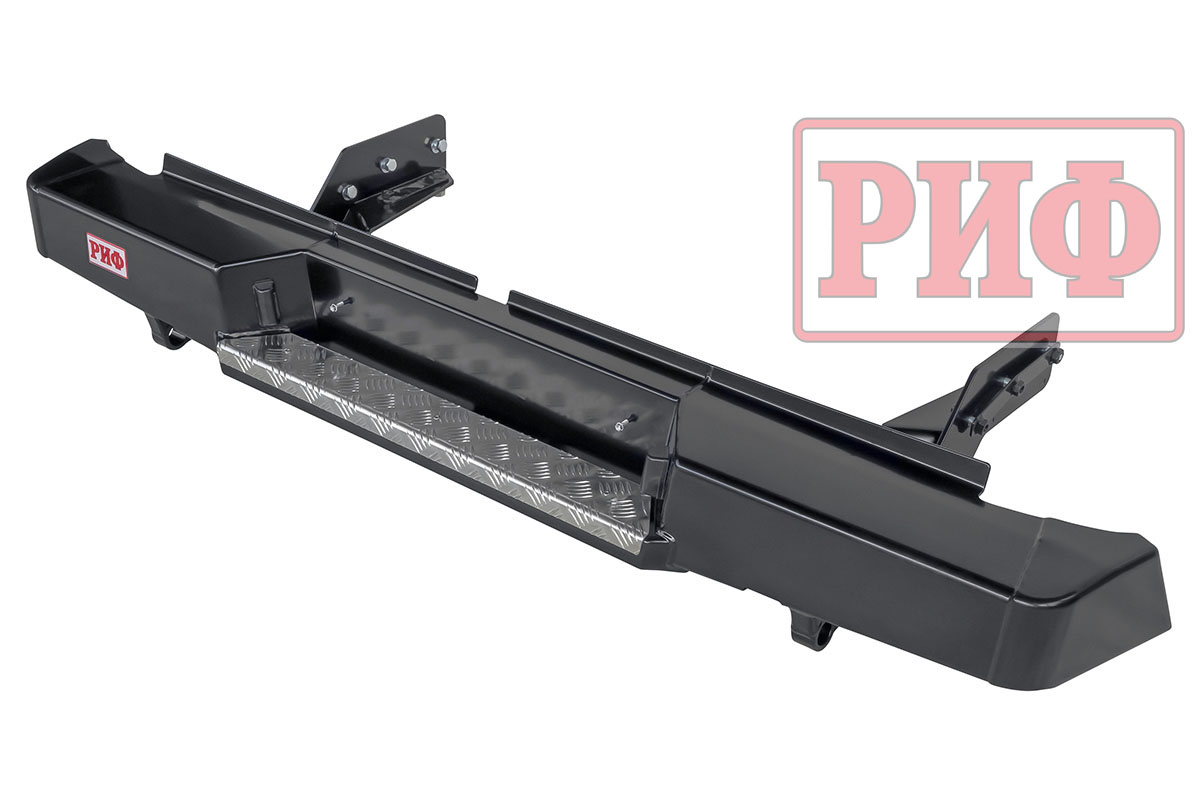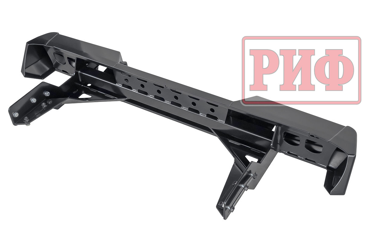 Задний силовой бампер РИФ надежно защитит кузов автомобиля на бездорожье или в городе в случае непредвиденных инцидентов. Бампер оборудован упорами под хай джек и буксирными проушинами для работы с рывковой или буксировочной стропой.