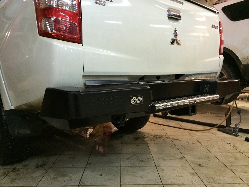 Бампер РИФ силовой задний Mitsubishi L200 2015-2019 с квадратом под фаркоп.