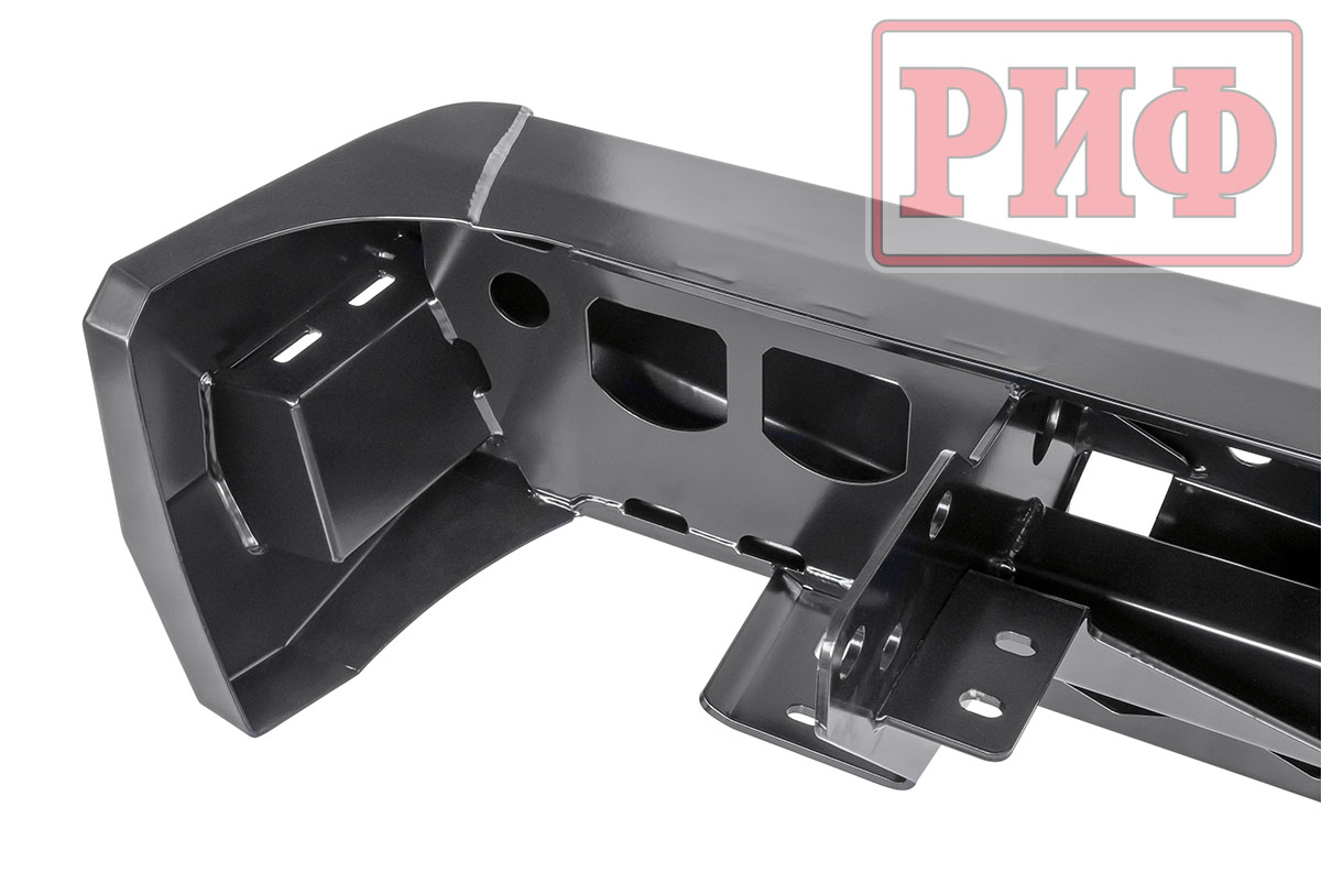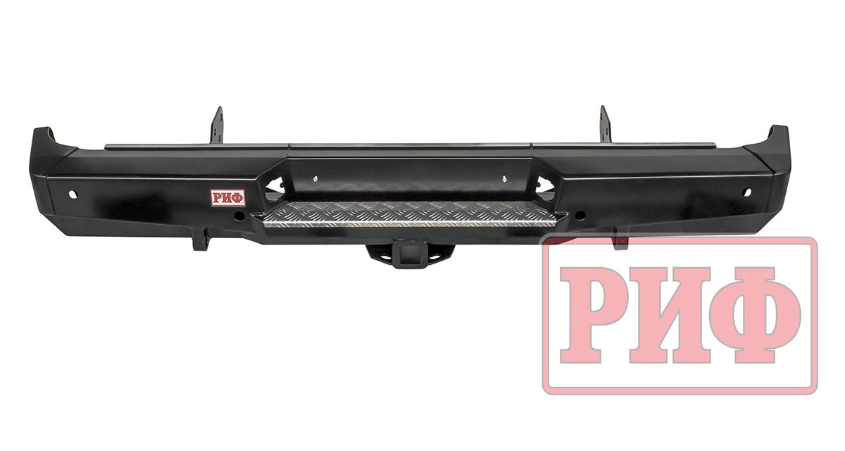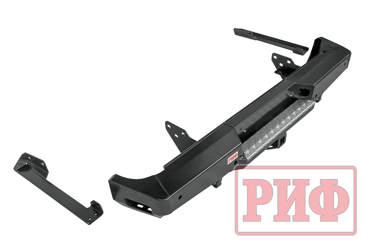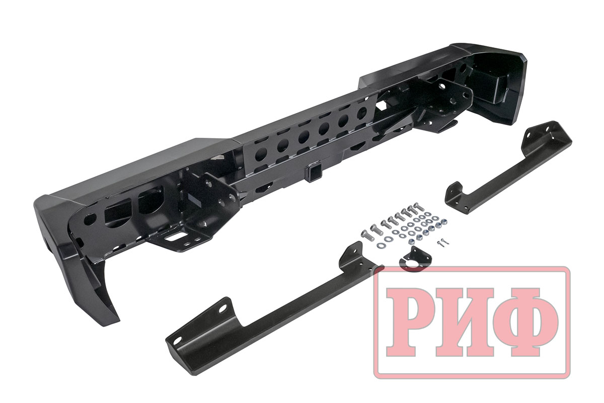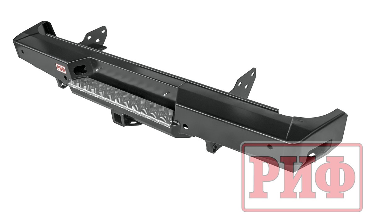 Задний силовой бампер РИФ надежно защитит кузов автомобиля на бездорожье или в городе в случае непредвиденных инцидентов. Бампер оборудован упорами под хай джек и буксирными проушинами для работы с рывковой или буксировочной стропой.