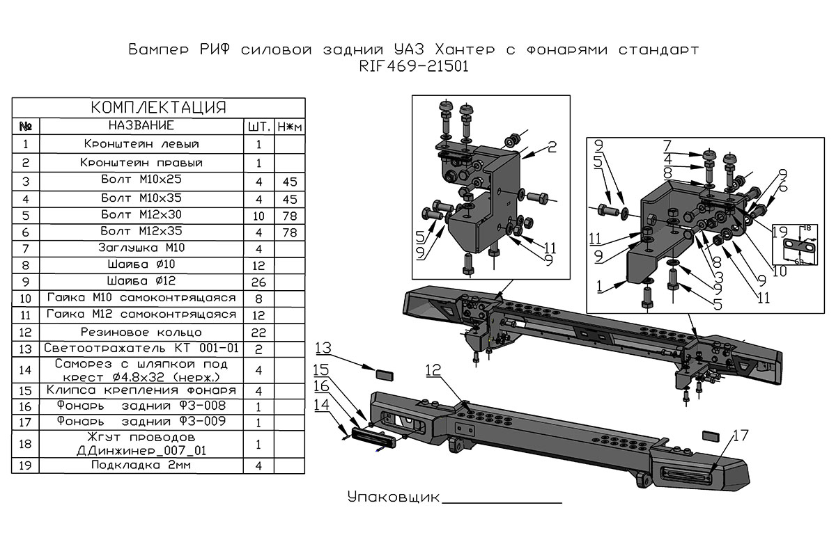 Задний силовой бампер РИФ надежно защитит кузов автомобиля на бездорожье или в городе в случае непредвиденных инцидентов. Бампер оборудован упорами под хай джек и буксирными проушинами для работы с рывковой или буксировочной стропой.