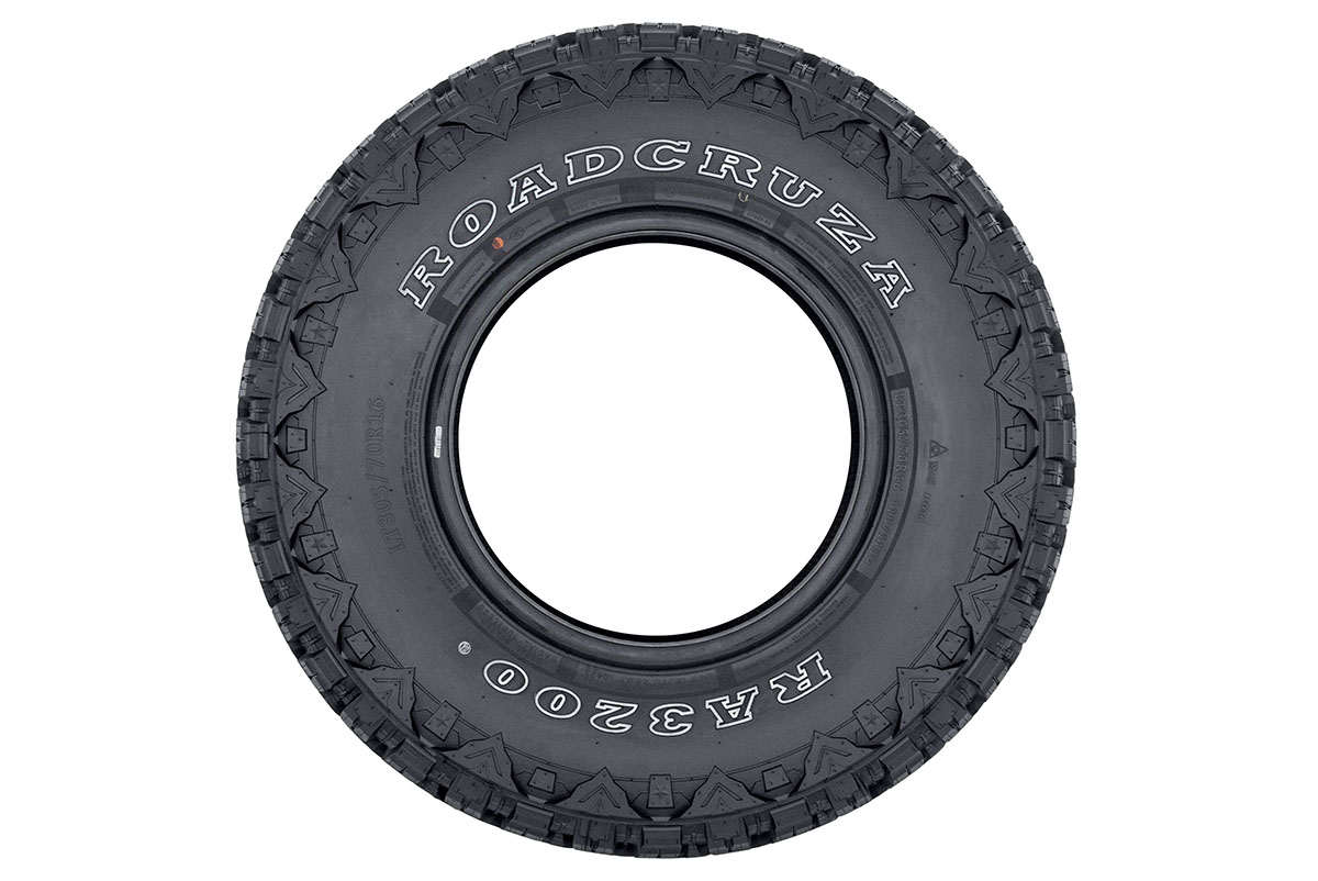 Асимметричный рисунок протектора модели RA3200 - это гарантия комфортной езды по твердым покрытиям и уверенности вне их как летом, так и зимой. Разреженная конструкция протектора, форма и размеры блоков и межблочных канавок, а также усиленное плечо с хорошими грунтозацепами обеспечивают равномерное распределение нагрузки на пятно дорожного контакта и способствуют эффективному самоочищению шины - она хороша как в городе, так и на сложном рельефе, будь то грязь, колеи, глиняное бездорожье или разбитые грунтовки. V-образная мощная боковина и прочностные показатели компаунда шины обеспечивают дополнительную стойкость к повреждениям и устойчивость к порезам и сколам.