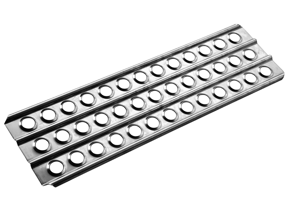Большие отверстия с отштамповкой обеспечивают хорошее сцепление с шинами и минимизируют пробуксовку колёс по поверхности трака.