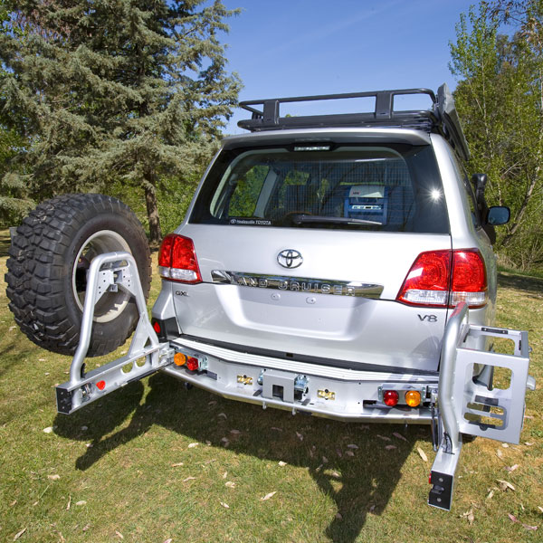 Стильные, функциональные бамперы ARB, оборудованные креплением для запасного колеса и дополнительной канистры, обеспечивают повышенную защиту задней части Вашего автомобиля. Задние бамперы могут "нести" два запасных колеса или одно колесо и запасную канистру и поставляются с некоторыми дополнительными приспособлениями, включая крепление для Hi-Jack и фаркоп.Перемещение запасного колеса из-под автомобиля существенно увеличивает дорожный просвет при движении по бездорожью.Задний бампер ARB обеспечивает быстрый, удобный доступ к багажнику Вашего автомобиля.Крепление запасного колеса обеспечивает простоту и удобство использования. Для того, чтобы открыть "калитку" надо просто потянуть за рыча