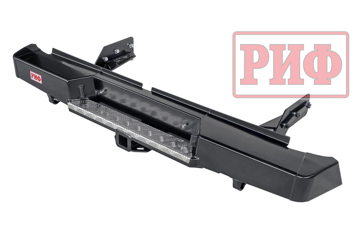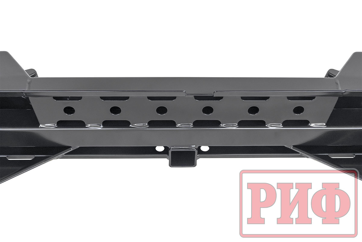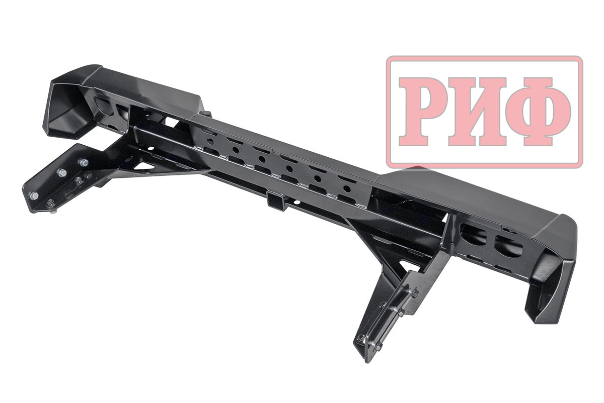 Задний силовой бампер РИФ надежно защитит кузов автомобиля на бездорожье или в городе в случае непредвиденных инцидентов. Бампер оборудован упорами под хай джек и буксирными проушинами для работы с рывковой или буксировочной стропой.