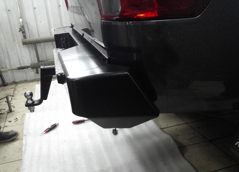 Бампер РИФ силовой задний Toyota Hilux 2015+ с квадратом под фаркоп