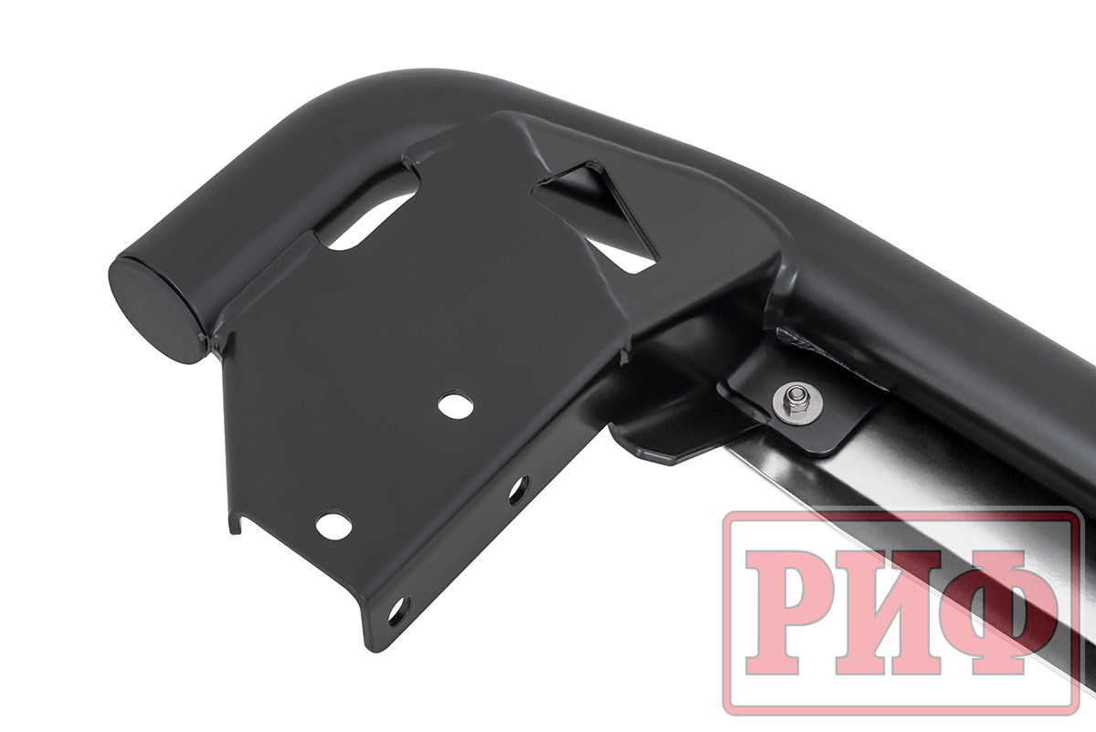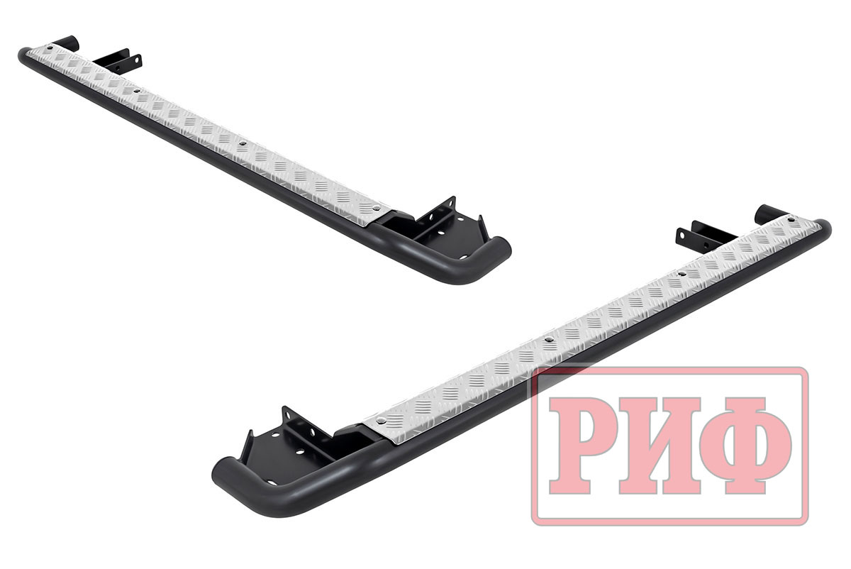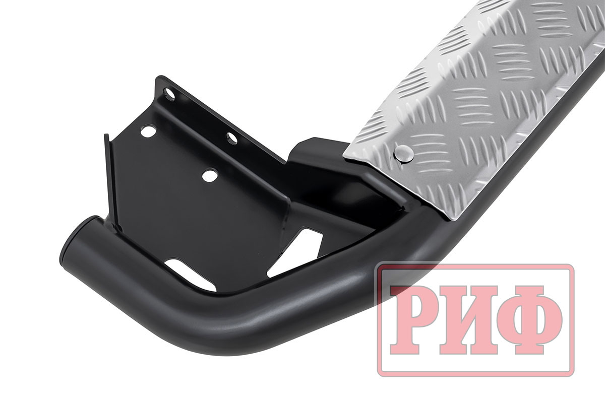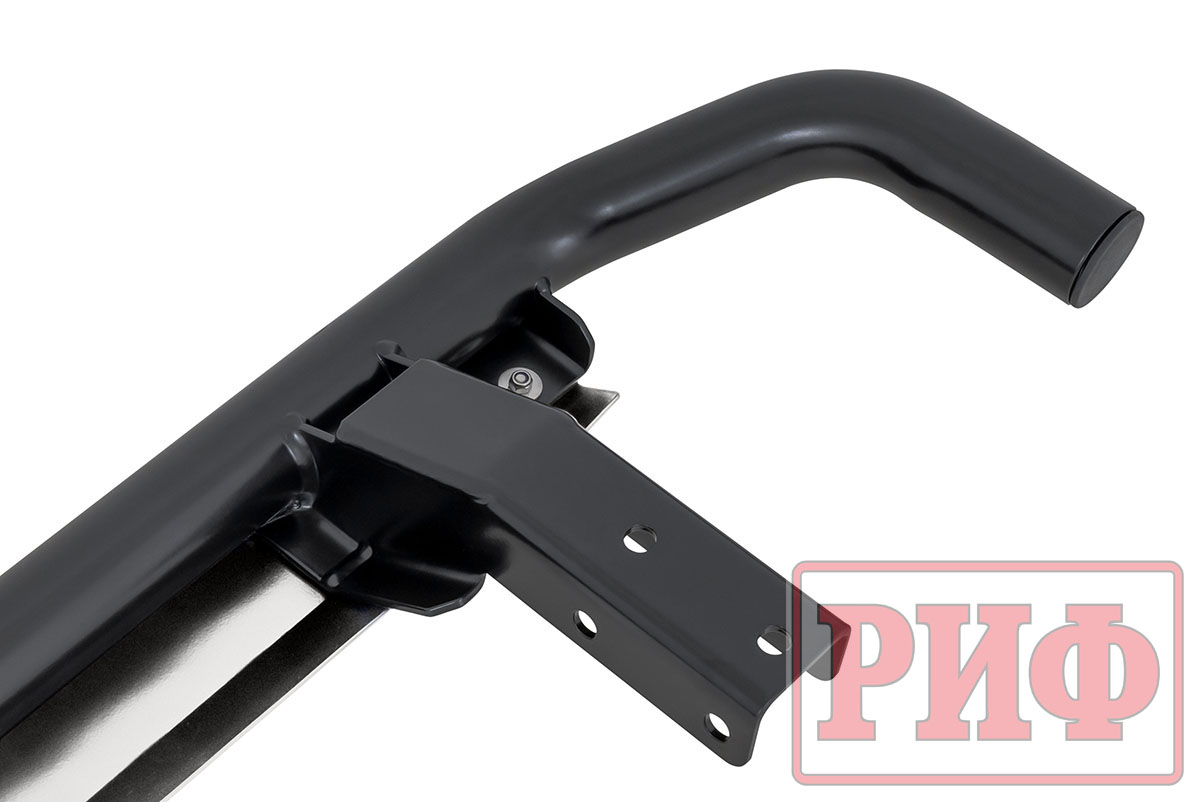 Конструкция порогов РИФ крайне прочна и долговечна, пороги рассчитаны на эксплуатацию в тяжелых условиях – они изготовлены из цельной стальной трубы без применения сварки. Пороги крепятся к раме с помощью стремянок.