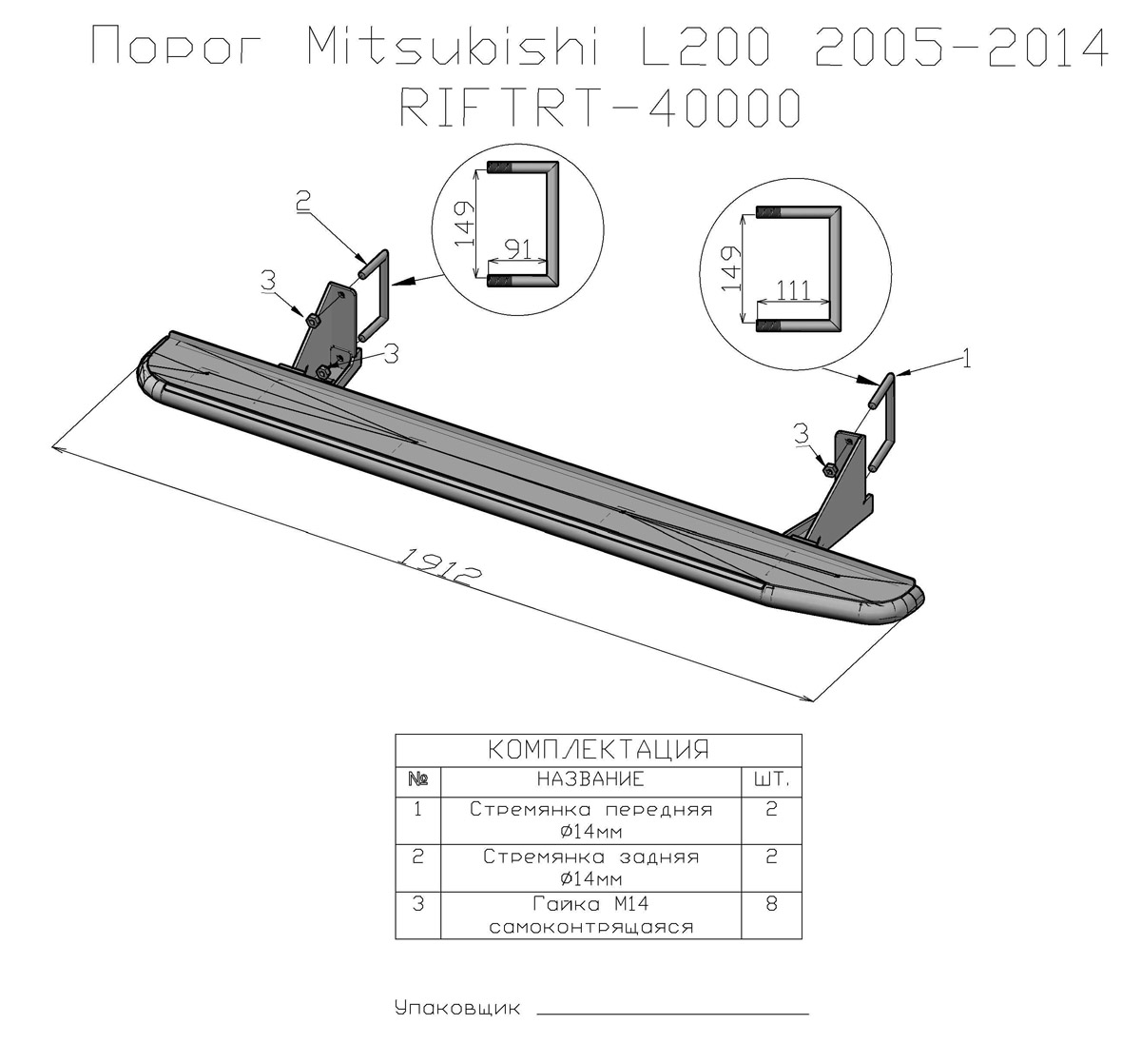 Конструкция порогов РИФ крайне прочна и долговечна, пороги рассчитаны на эксплуатацию в тяжелых условиях – они изготовлены из цельной стальной трубы без применения сварки. Пороги крепятся к раме с помощью стремянок.