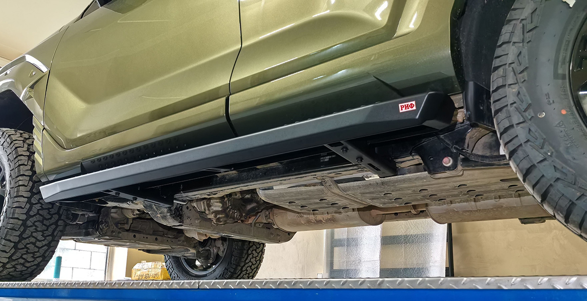 Пороги РИФ облегчают посадку и высадку из салона внедорожника, благодаря крайне прочной и долговечной конструкции, прекрасно подойдут для эксплуатации в любых, даже самых суровых, условиях.