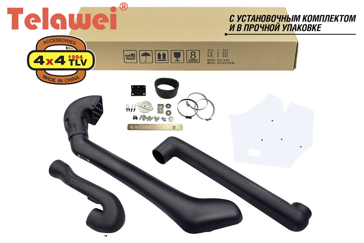Шноркель Telawei , китайский шноркель - это труба-воздухозаборник необходимая для форсирования водных преград и предназначенная для защиты двигателя от попадания воды и предохраняющая его от гидроудара. Также китайский шноркель уменьшает загрязнение воздушного фильтра при езде по песку и пыльным дорогам. Шноркель Telawei, китайский шноркель - обязательный атрибут Вашего внедорожника. Китайский шноркель Telawei не уступает по качеству изготовления таким брендам как Safari Snorkel, TJM Snorkel которые произведены в Австралии.
