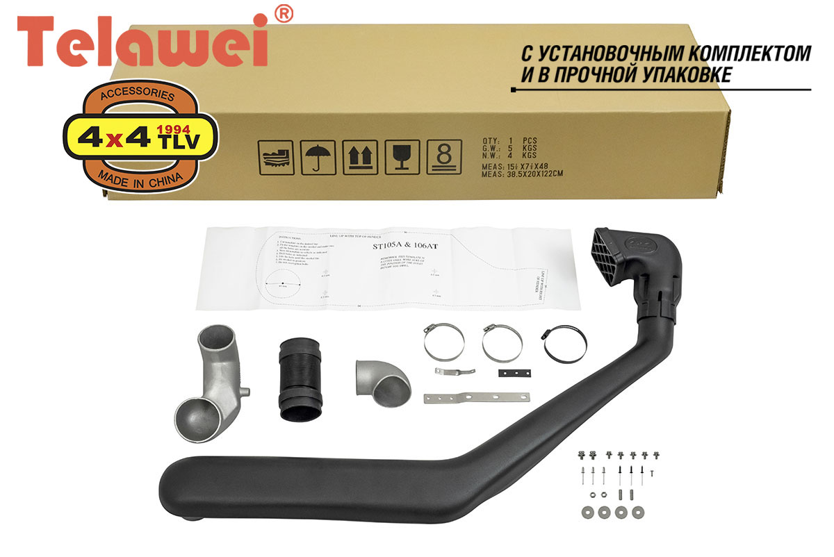 Установка шноркеля относительно проста, и не требует сложной подгонки. Материал: спецполиэтилен LLDPE, легкий, долговечный, ударопрочный, устойчивый к ультрафиолету и предельным температурам. Толщина стенок 3-4 мм