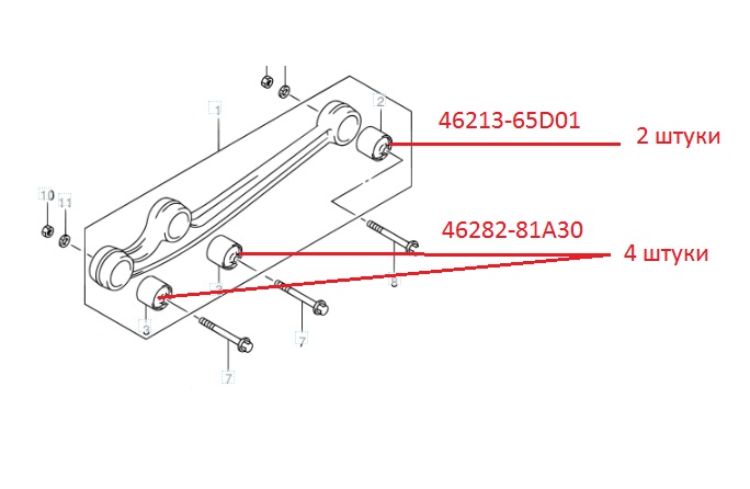 Номер оригинала 46282-81A30 4 штуки, 46213-65D01 2 штуки