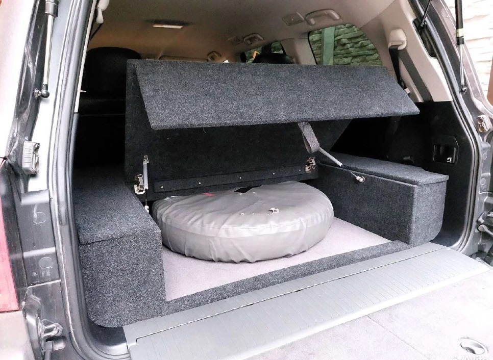 Если делать органайзер под полноценное запасное колесо то спального места НЕ будет!